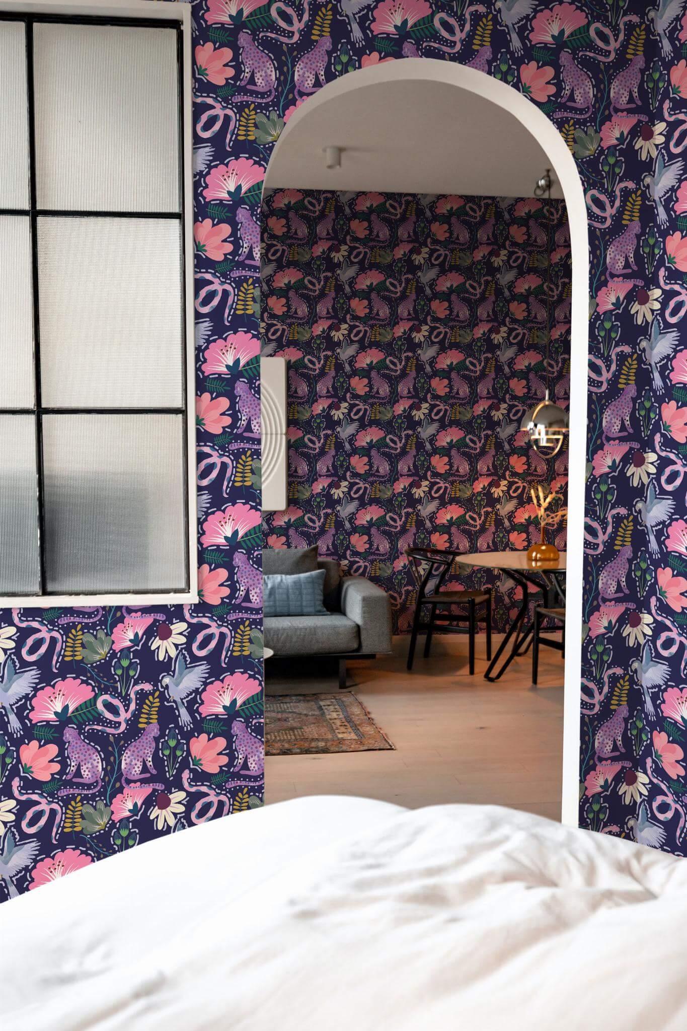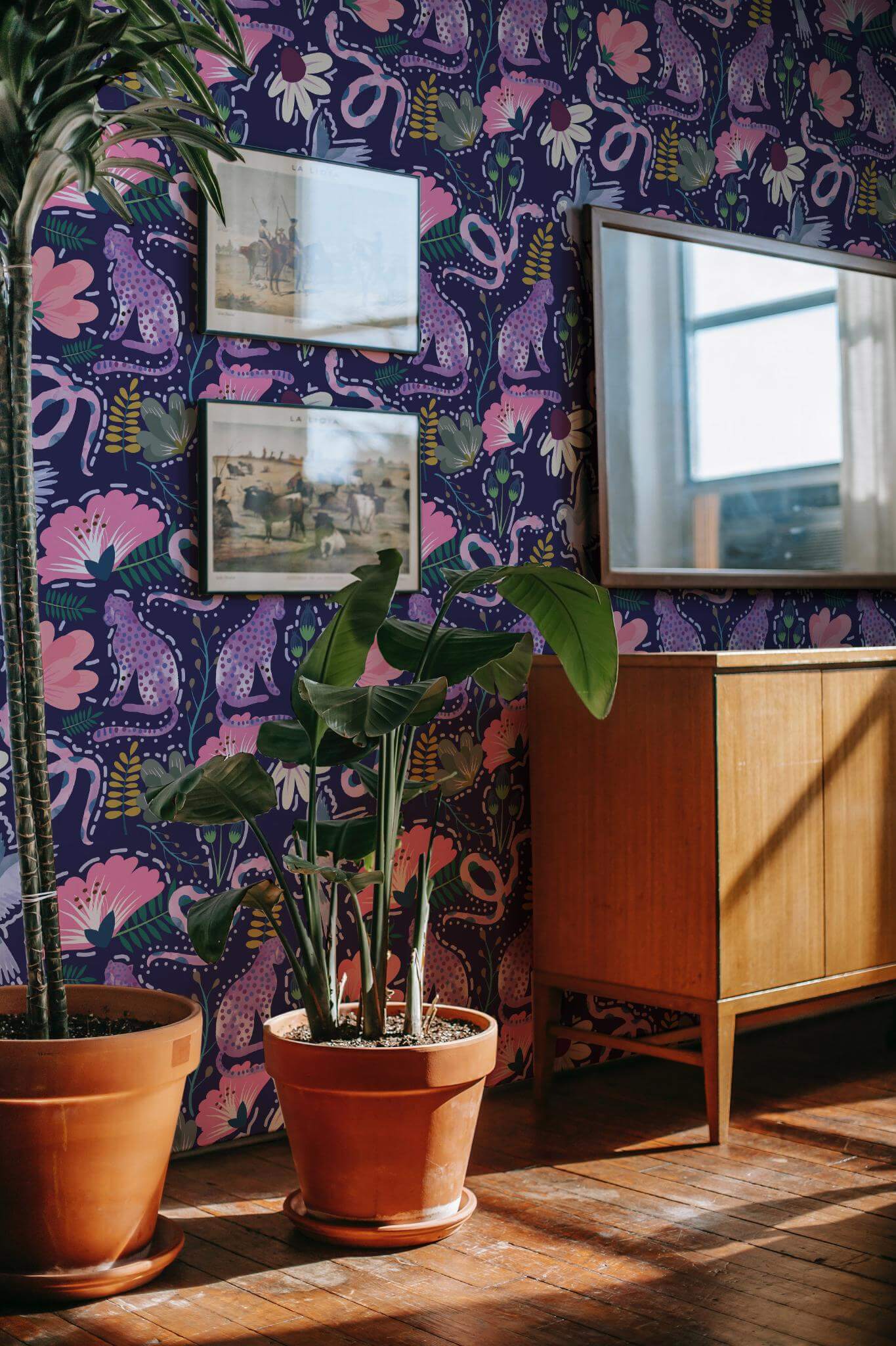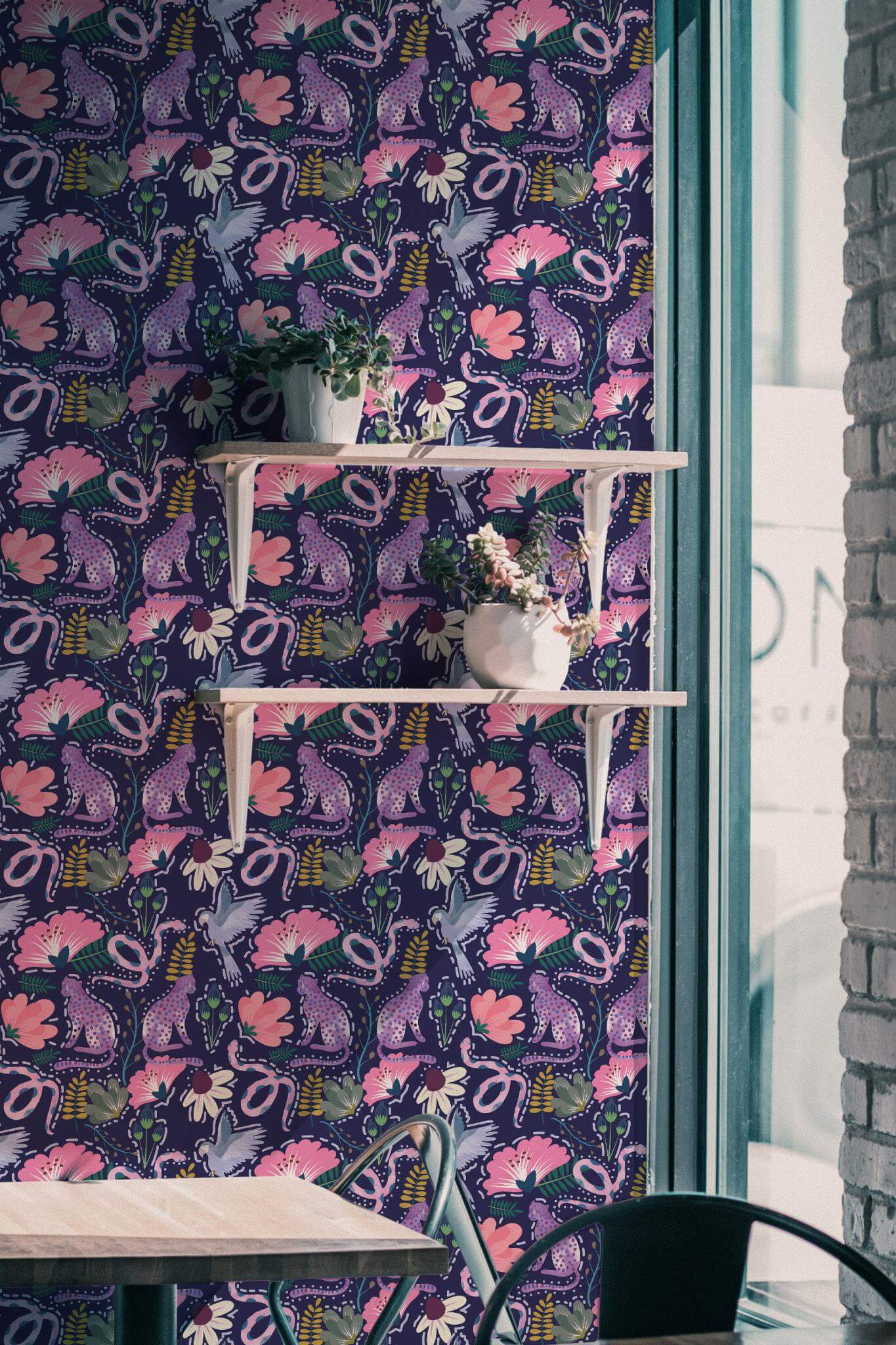 Animal colorful wallpaper is a vibrant tropical masterpiece that transforms any room into an adventurous escape, with its whimsical navy blue backdrop adorned with pink-spotted leopards, lush florals, and playful foliage. Perfect for an accent wall, this imaginative design also adds an exotic and whimsical touch to living rooms, bedrooms, or playrooms, infusing them with a lively botanical charm. Available in two options, the peel and stick version is easy to apply, featuring a self-adhesive, removable format with no glue needed, while the non-pasted version offers a more traditional application. Animal colorful wallpaper invites a sense of joy and wonder into your space, crafted by a passionate team dedicated to delivering safe, PVC-free wall décor that inspires with every glance. Let Animal colorful spark your creativity and transform your home into a vibrant haven.