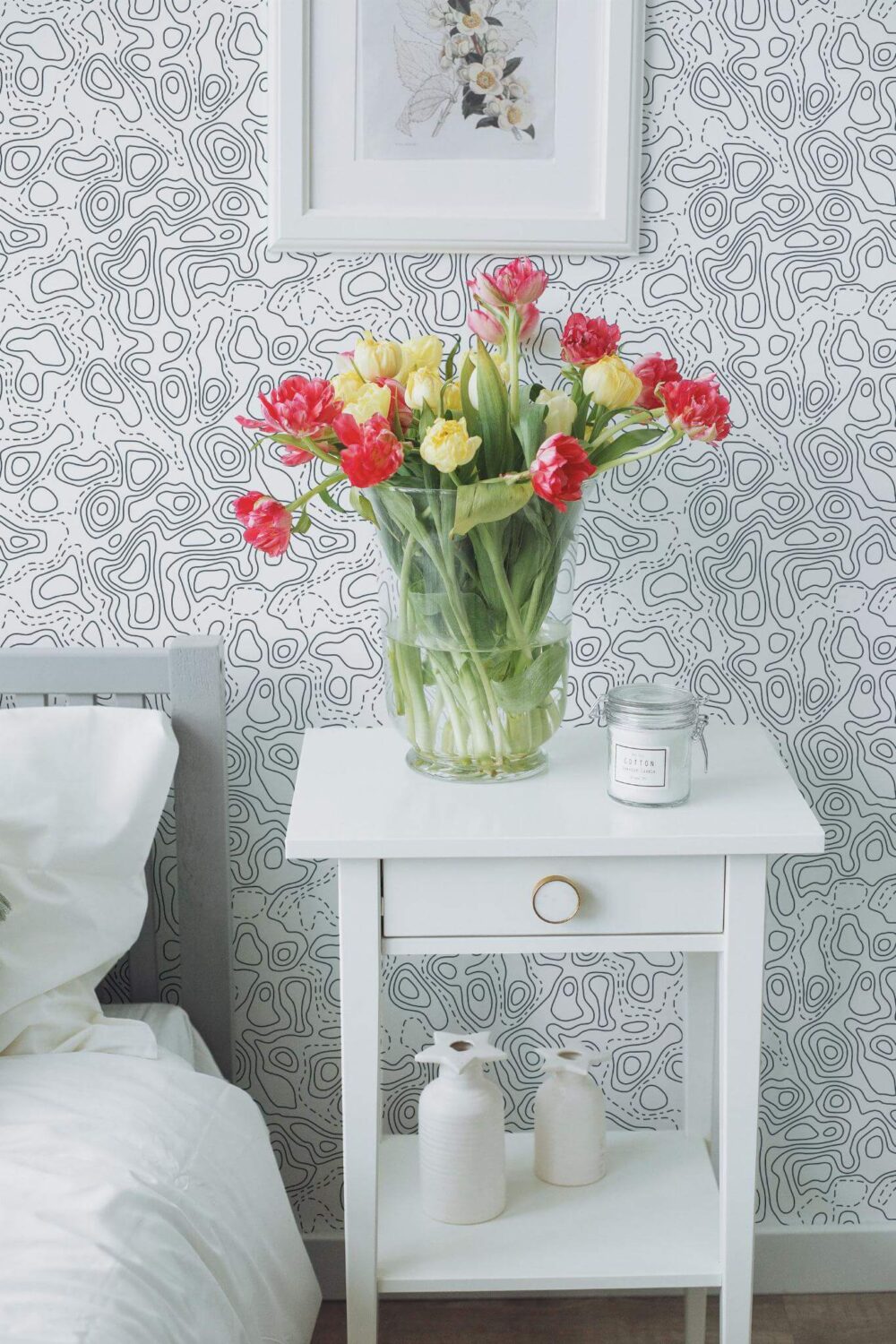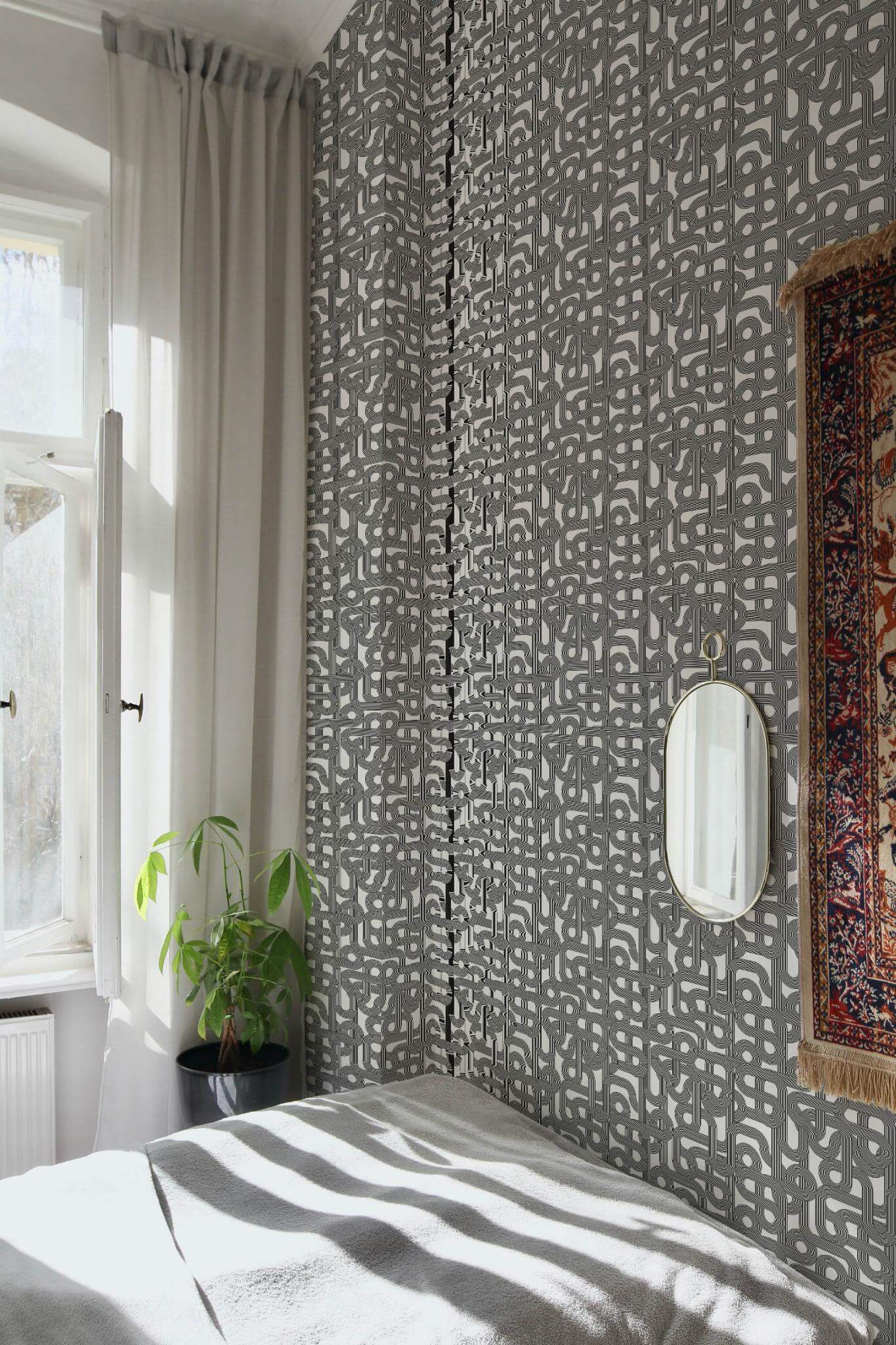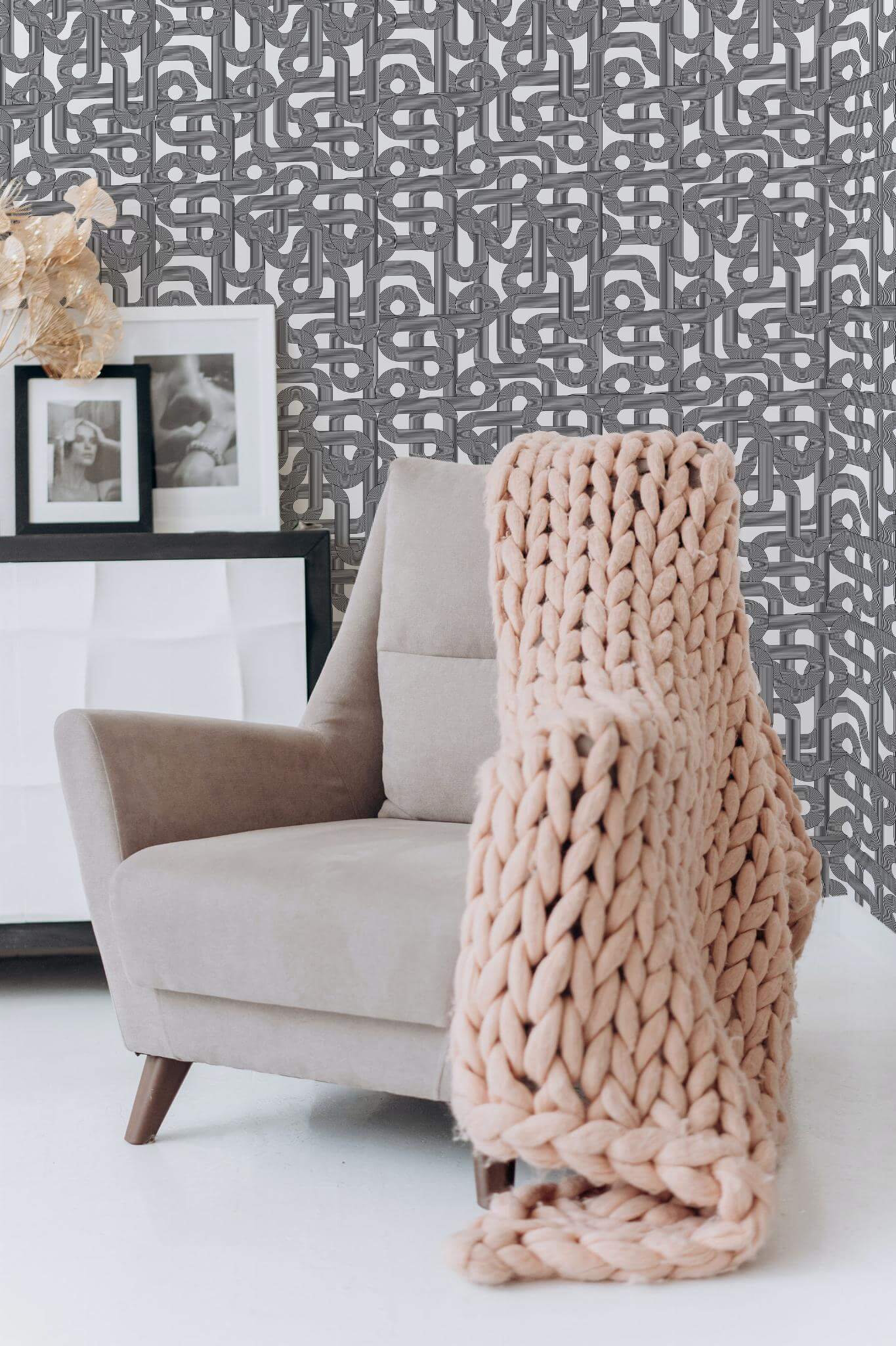 Black and white Art Deco wallpaper brings a touch of retro sophistication to your home with its monochrome color palette and geometric pattern, perfect for creating a stunning accent wall. This design, with its interlocking black and white labyrinth of bold, curving lines, crafts a dynamic and modern rhythm that can enhance any space, from living rooms to hallways, beyond just the recommended accent wall. Available in both peel and stick (self-adhesive – no glue needed, removable) and non-pasted (traditional application with glue) options, the peel and stick version is easy to apply, making it a breeze to introduce this intricate optical maze into your home. The original Black and white can be replaced with any of our standard shades or a custom color of your choice, inviting you to personalize your space with creativity and flair. Our team is passionate about infusing homes worldwide with vibrant, safe, PVC-free designs that celebrate nature’s inspiration, and this Black and white Art Deco wallpaper is a testament to that mission.