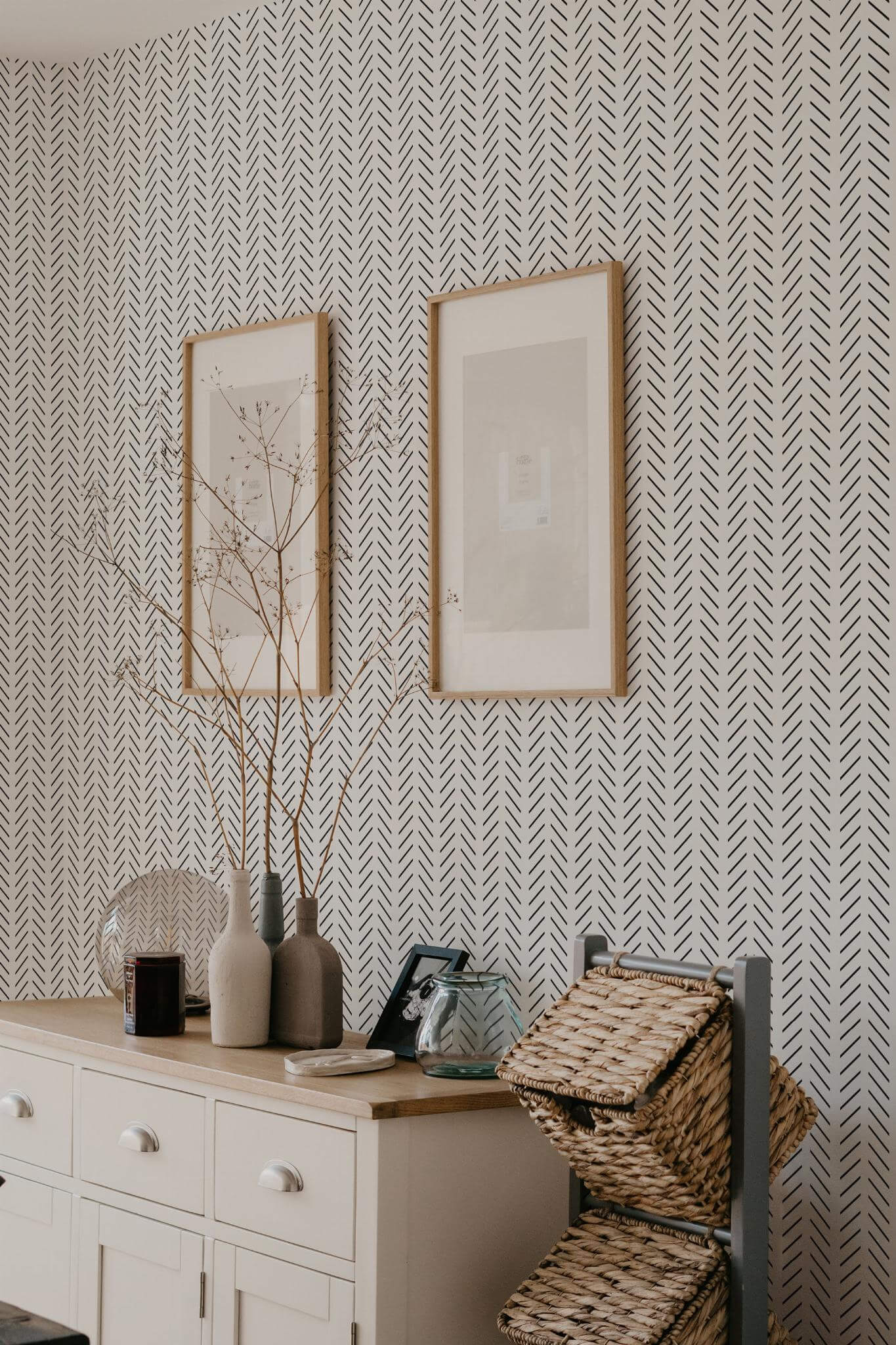 The Black and White Herringbone wallpaper is a farmhouse-inspired design that brings a sleek, modern touch to your living room with its crisp, black and white chevron pattern. This geometric design can transform any space, offering a clean and structured look that feels both contemporary and inviting. Perfect for enhancing not just living rooms, but also bedrooms, hallways, or offices, the Black and White Herringbone wallpaper is available in two options: an easy-to-apply peel and stick version, which is self-adhesive and removable, and a traditional non-pasted version requiring glue. The design allows for color customization, so you can replace the original black and white with any of our standard shades or a custom color of your choice. Our passionate team is dedicated to bringing vibrant, nature-inspired designs to homes worldwide, ensuring each piece is safe, PVC-free, and beautifully crafted for your enjoyment.