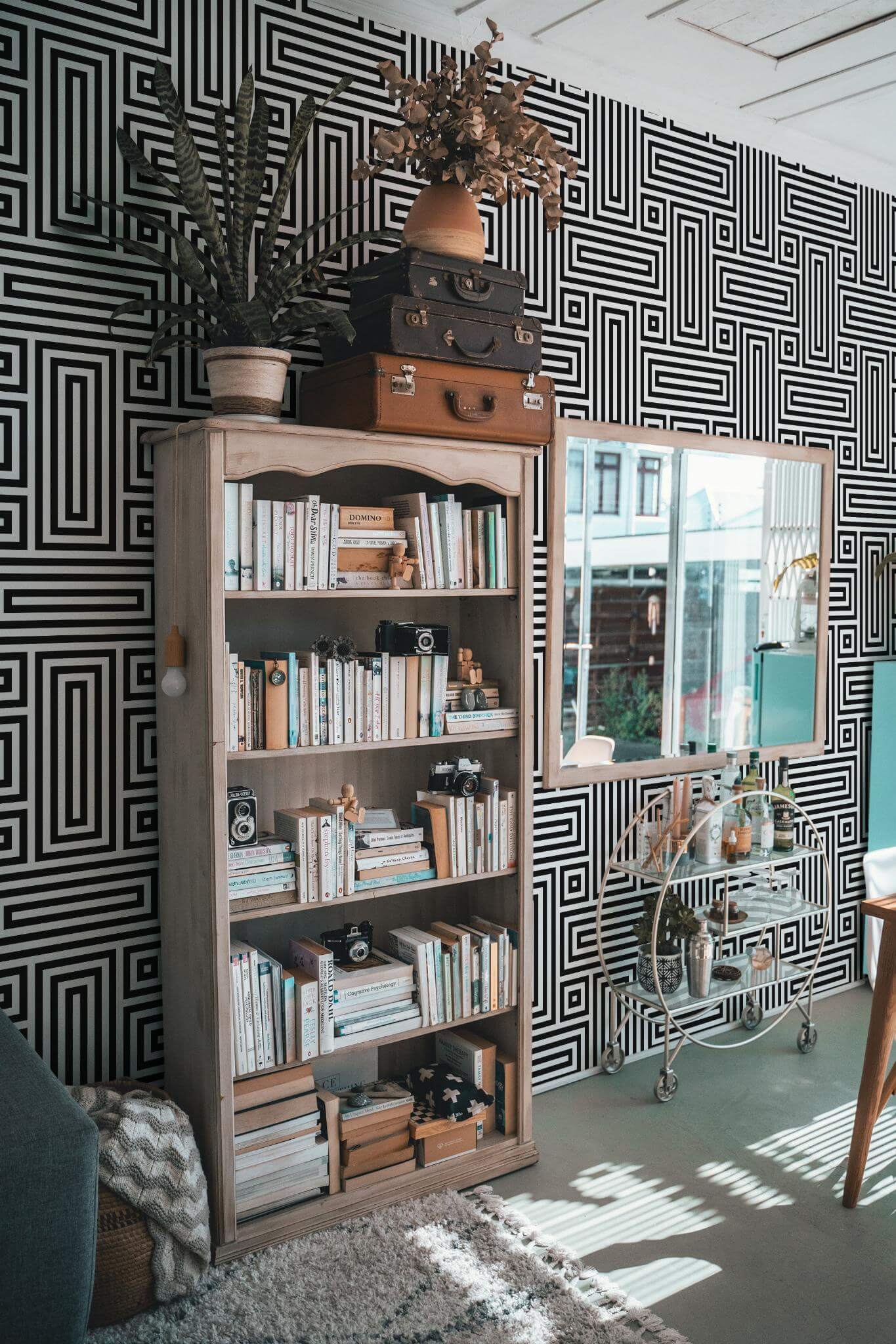 Black and white retro geometric Wallpaper