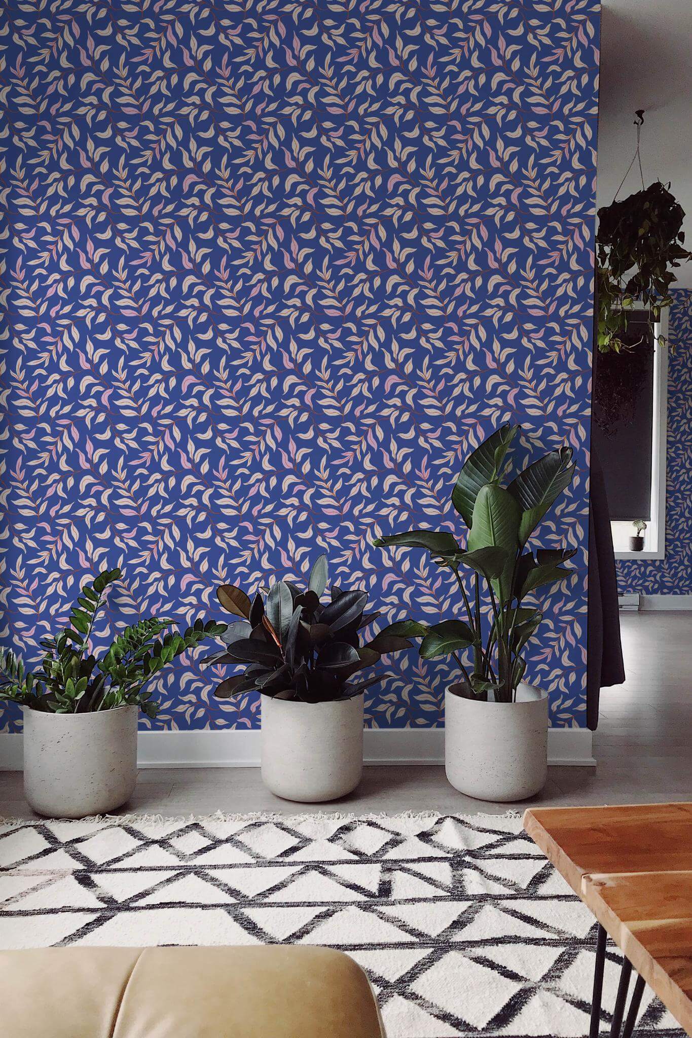 Blue leaf wallpaper is a stunning botanical design that brings vibrant energy to any room with its elegant blue backdrop and flowing pink and white leaf motifs. Perfect for an accent wall, it creates a dynamic and fresh atmosphere that enhances not only living rooms and bedrooms but also home offices and creative spaces. Experience the joy of bringing nature’s artistry indoors, as Blue leaf transforms your walls into a vibrant floral dance. This wallpaper is available in two options: the peel and stick version, which is self-adhesive and easy to apply, requiring no glue, and the non-pasted option, which follows a traditional application method with glue. Embrace the modern, artistic flair of Blue leaf wallpaper and let it inspire your home with its rich, natural beauty.