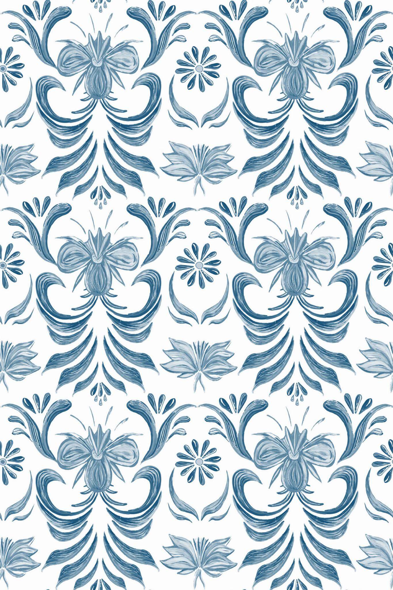 Blue vintage floral Wallpaper
