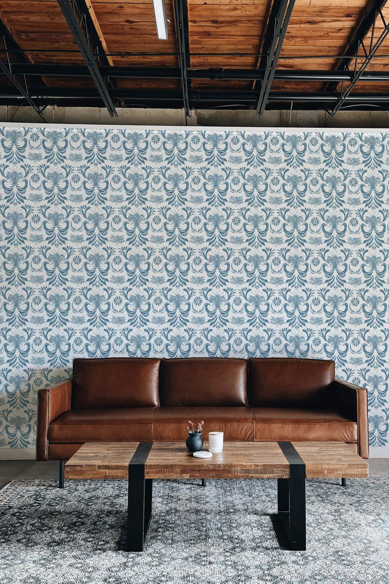 Blue vintage floral wallpaper brings the timeless elegance of Chinoiserie style into your living room with its intricate floral pattern in serene blue and white. This design transforms any space into a tranquil retreat, perfect for living rooms yet equally enchanting in bedrooms or studies. The elegant blue floral motifs gracefully swirl on a crisp white background, creating a harmonious and delicate ambiance that enhances your home with its ornate charm. Available in two options, the peel and stick version is easy to apply with its self-adhesive backing—no glue needed and removable—while the non-pasted version offers a traditional application with glue for those who prefer it. The Blue vintage floral design is perfect for those who seek to bring the joy of nature’s inspiration into their homes with innovative, PVC-free wall décor.