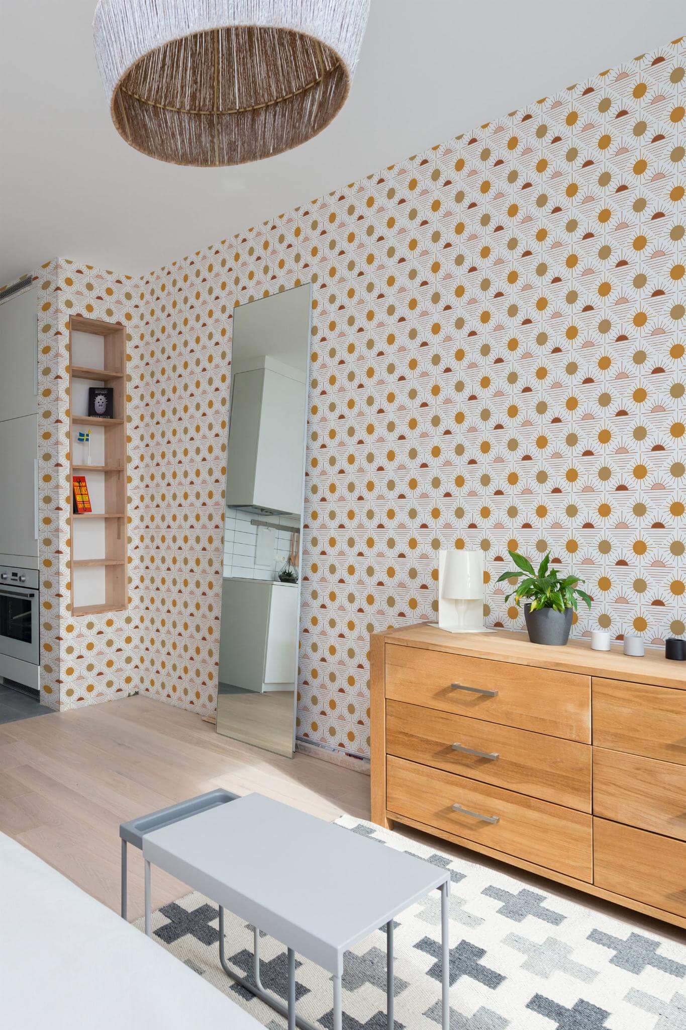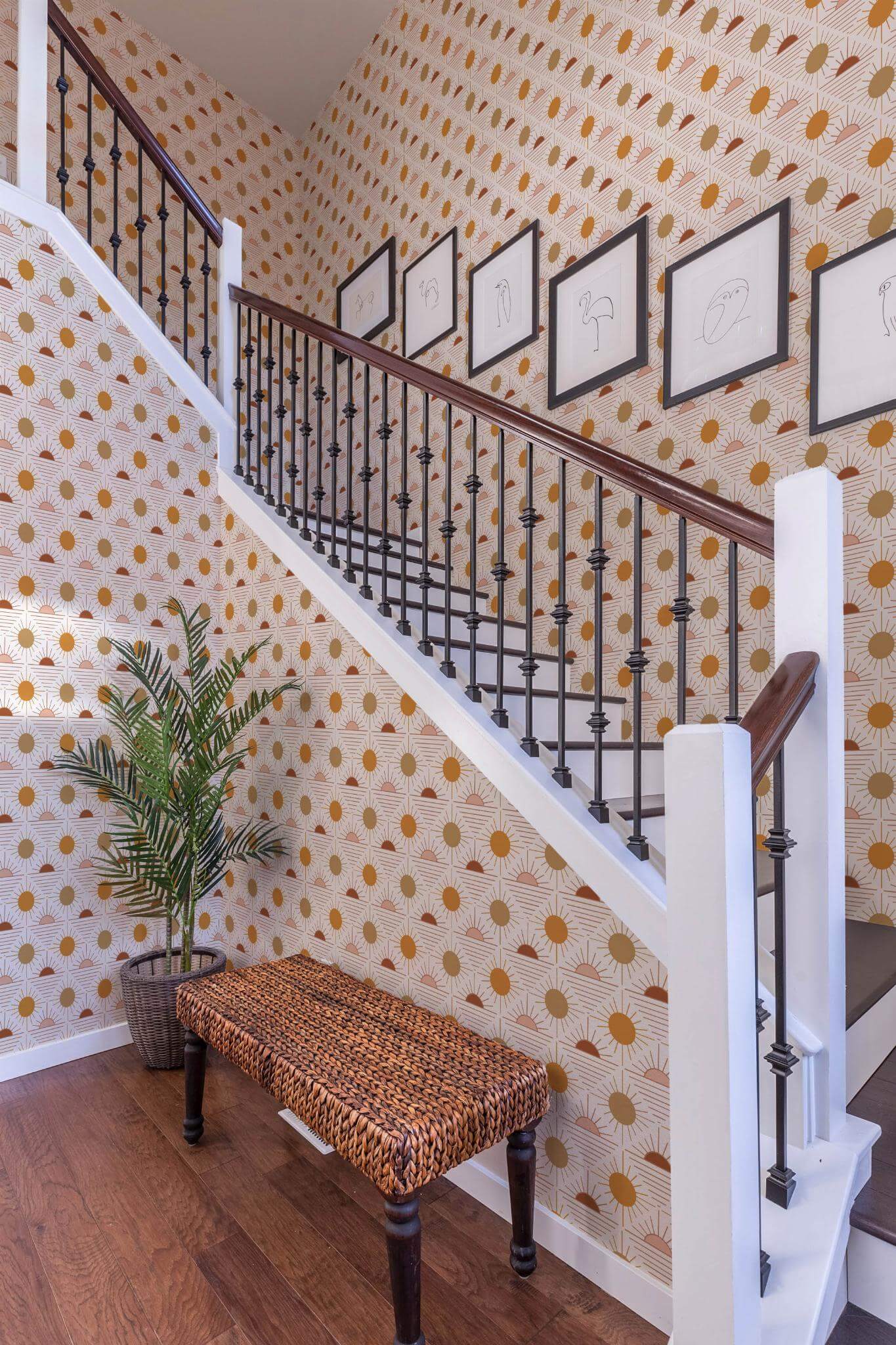 Boho Sun wallpaper brings a touch of bohemian flair to your hallway with its geometric pattern and earthy tones, accented with subtle blush hues. This celestial sunburst design creates a warm and harmonious ambiance, filling any room with the serene and playful energy of a sunrise. Whether you’re updating your hallway or looking to add a splash of sunshine to your living room or bedroom, Boho Sun wallpaper is a versatile choice that enhances any space. Available in two options, the peel and stick version is self-adhesive, requiring no glue and easy to remove, while the non-pasted option allows for traditional application. Inspired by nature’s beauty, this wallpaper is part of a global, passionate effort to bring PVC-free, vibrant décor to homes everywhere.