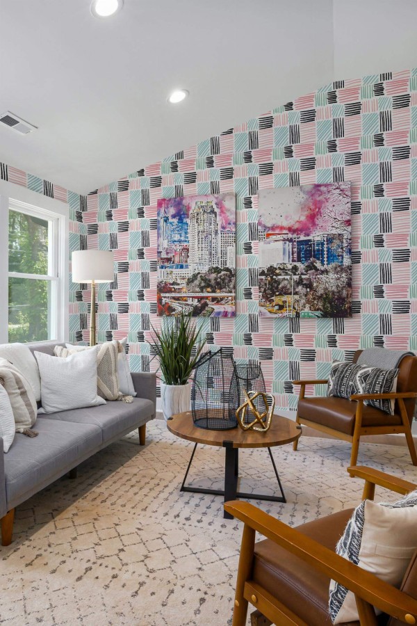 Brush stroke lines wallpaper brings an eclectic splash of color to your game room with its playful pastel stripes in pink, mint, and teal, interspersed with bold black for a lively geometric patchwork. This vibrant and dynamic design adds a modern, artsy touch to any space, transforming your interiors into a canvas of abstract creativity. Perfect for more than just game rooms, Brush stroke lines wallpaper can enhance any area where you want to capture an energetic and engaging atmosphere. Available in both peel and stick (self-adhesive, no glue needed, removable) and non-pasted options, the peel and stick version is easy to apply, making it a fantastic choice for quick and stylish room makeovers. With our commitment to offering safe, PVC-free wall décor, this design is an adventurous way to bring the joy of color and innovation into your home.