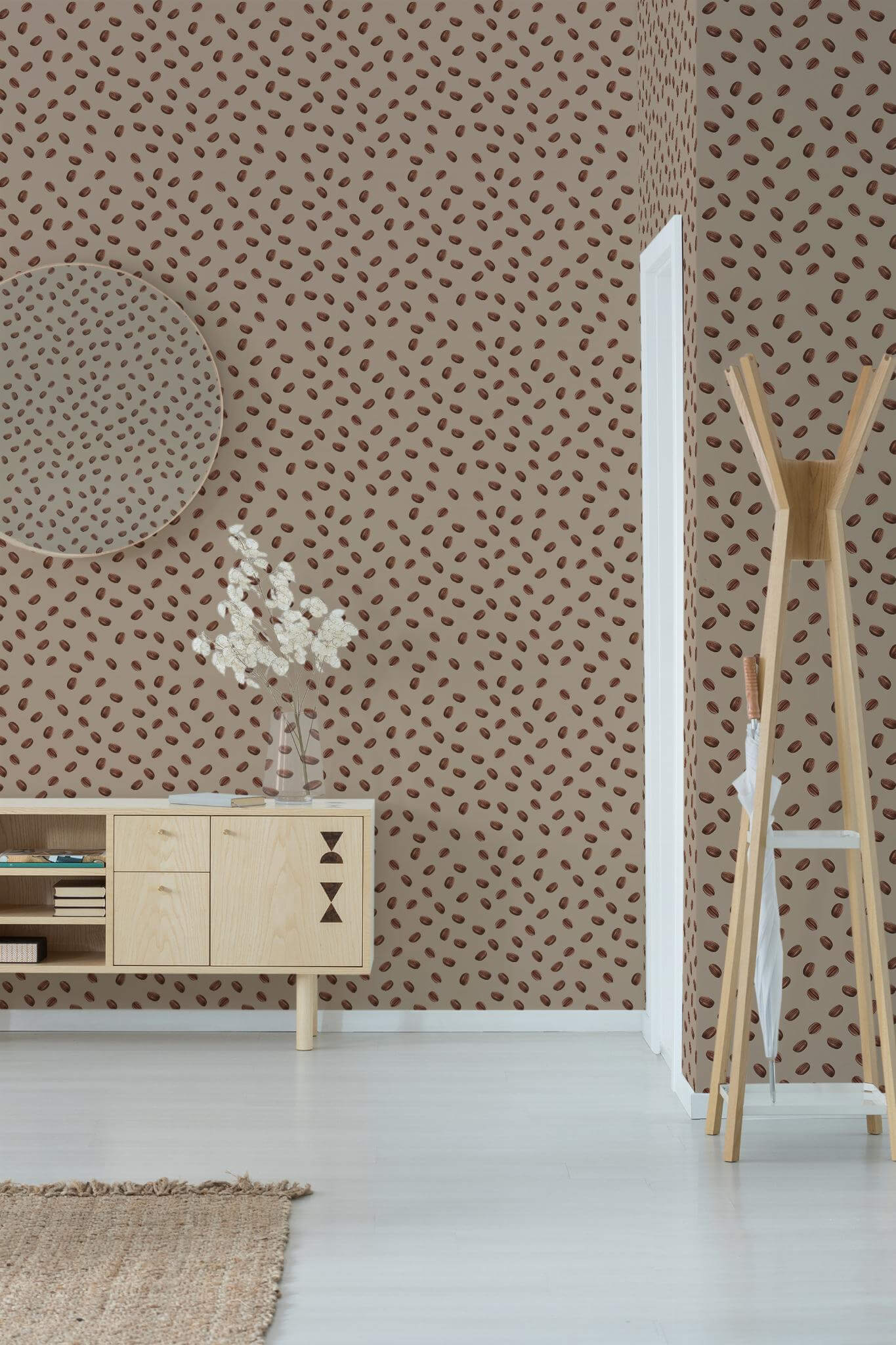 The Coffee bean for Café wallpaper, with its charming farmhouse style and rich brown hues, is perfect for creating a cozy and inviting atmosphere in cafés and beyond. Featuring an elegant scatter of aromatic coffee beans on a warm beige background, this pattern brings an energetic yet casual vibe to any space. Whether you’re looking to enhance the ambiance of your café or add a touch of warmth to your kitchen or living room, the Coffee bean for Café wallpaper makes an ideal choice. This design is available in two options: the user-friendly peel and stick version, which is self-adhesive, removable, and easy to apply, and the traditional non-pasted version, which requires glue for application. Let the design Coffee bean for Café fill your space with the inviting essence of a bustling coffee shop, transforming your walls into a comforting retreat.