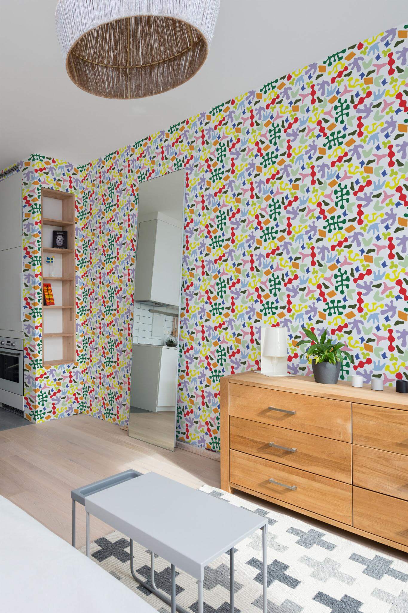 Colorful coral wallpaper brings an abstract, fun design to life with its vibrant mix of red, yellow, green, and blue hues, making it the perfect choice for a kids’ room. The playful and whimsical shapes dance across a crisp white background, infusing any space with energy and imagination. While this dynamic wallpaper is ideal for a child’s sanctuary, its lively design can also enhance playrooms or any area that craves a splash of joy and creativity. Available in both peel and stick (self-adhesive – no glue needed, removable) and non-pasted options, the peel and stick version is especially easy to apply, making it a breeze to transform your interiors. With Colorful coral, you invite a world of vibrant possibilities into your home, crafted by our dedicated team committed to safe, PVC-free, and inspiring wall décor.