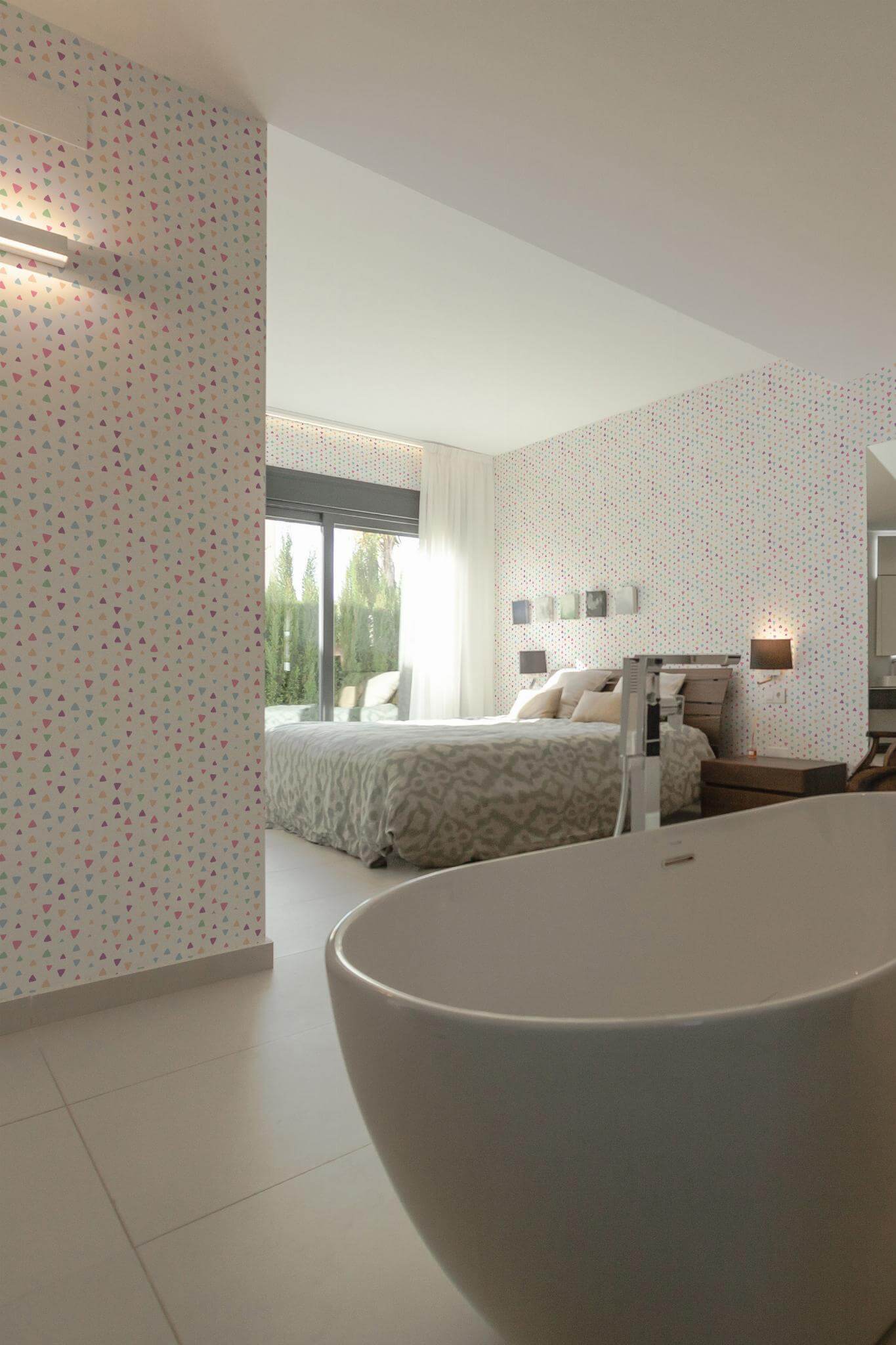 Colorful triangles wallpaper brings a funky geometric style to life with its playful pastel aesthetic, perfect for brightening up a kids’ room. Featuring a delightful mix of mint green, blush, and lavender triangles scattered on a crisp white background, this design adds a cheerful and whimsical touch to any space. While ideal for children’s rooms, the joyful energy of Colorful triangles can also effortlessly enhance playrooms, nurseries, or any area that welcomes a lighthearted and vibrant atmosphere. Available in two options—peel and stick (self-adhesive, removable) and non-pasted (requires glue)—the peel and stick version is particularly easy to apply, making it a fun and innovative way to refresh your walls. Embrace the joy of transforming your home with this adventurous and optimistic design, crafted by our dedicated global team to be safe, PVC-free, and beautifully inspiring.