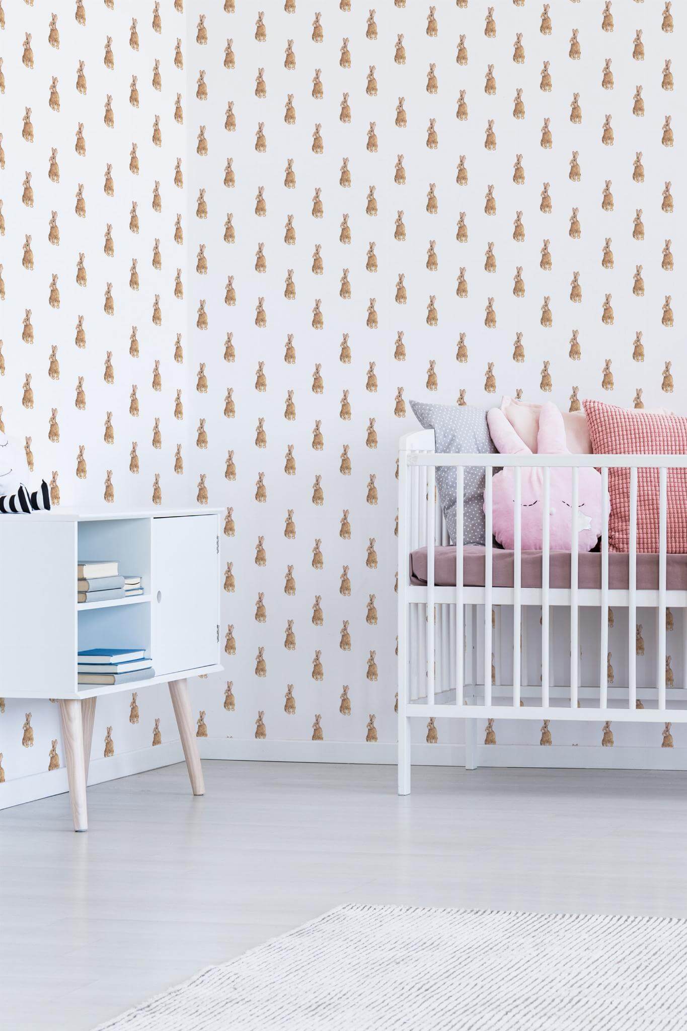 Cute bunnies wallpaper brings a delightful novelty style to any nursery with its charming brown bunny motifs on a crisp white background, perfectly complemented by a soft beige hue. This whimsical design transforms any space into a playful and gentle haven, making it ideal not only for nurseries but also for playrooms and cozy corners in your home. The wallpaper comes in two versatile options: the peel and stick version, which is self-adhesive, removable, and easy to apply without the need for glue, and the non-pasted option for those who prefer a traditional application. With Cute bunnies wallpaper, you can infuse your home with an adorable touch of nature, creating a warm and inviting atmosphere that sparks joy. Our dedicated team is thrilled to offer this safe, PVC-free décor, enhancing homes worldwide with innovative and whimsical designs.