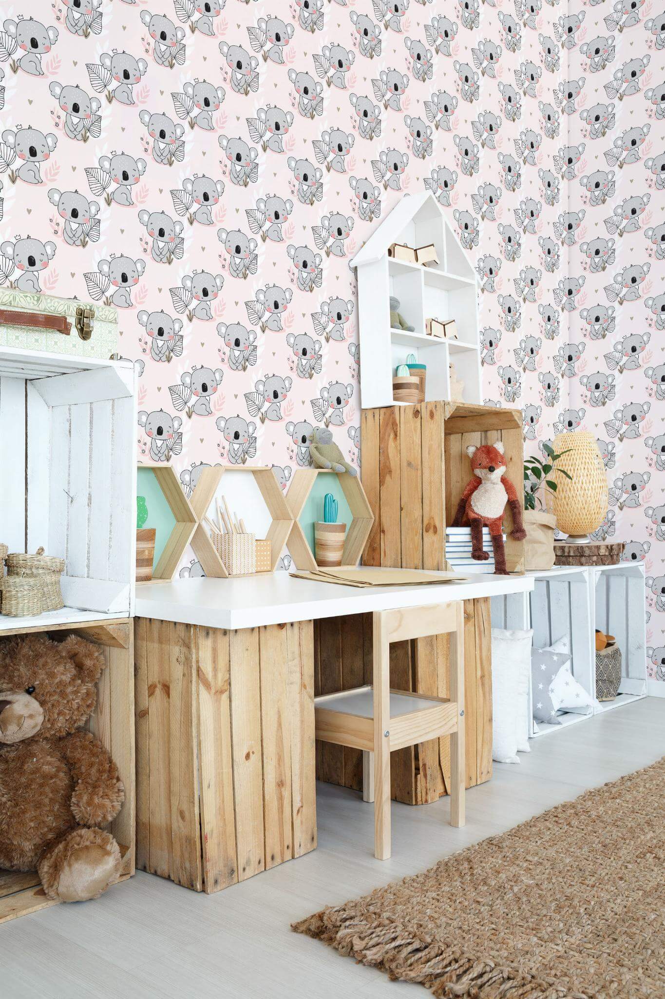 Cute Koala wallpaper brings the delightful Kawaii style to your nursery with its charming pink hues. This adorable design features gray koalas with rosy cheeks nestled among whimsical leaves, creating a playful and enchanting atmosphere that can brighten up any room, from playrooms to cozy corners. The Cute Koala wallpaper is available in two options: the peel and stick version, which is easy to apply and remove without glue, making it a breeze to refresh your space, and the traditional non-pasted type for those who prefer a more permanent application. Let the joyful and leafy design of Cute Koala enhance your home, offering a touch of nature’s inspiration with the playful spirit of these lovable animals. Our team is passionate about bringing color and life to homes worldwide, with safe, PVC-free options that are as beautiful as they are innovative.