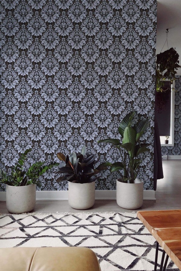 Damask wallpaper brings a vintage flair to your living room with its elegant mint green and teal hue, adorned with intricate beige motifs. This refined design doesn’t just elevate living rooms; it enhances any space with its luxurious and ornate charm. The Damask pattern is perfect for those seeking a classical and sophisticated touch in their interiors. Available in both peel and stick (self-adhesive – no glue needed, removable) and non-pasted (traditional application with glue) options, the peel and stick version is especially easy to apply, allowing for a seamless transformation. Embrace the joy of bringing color and life into your home with our PVC-free, beautifully crafted wall décor.
