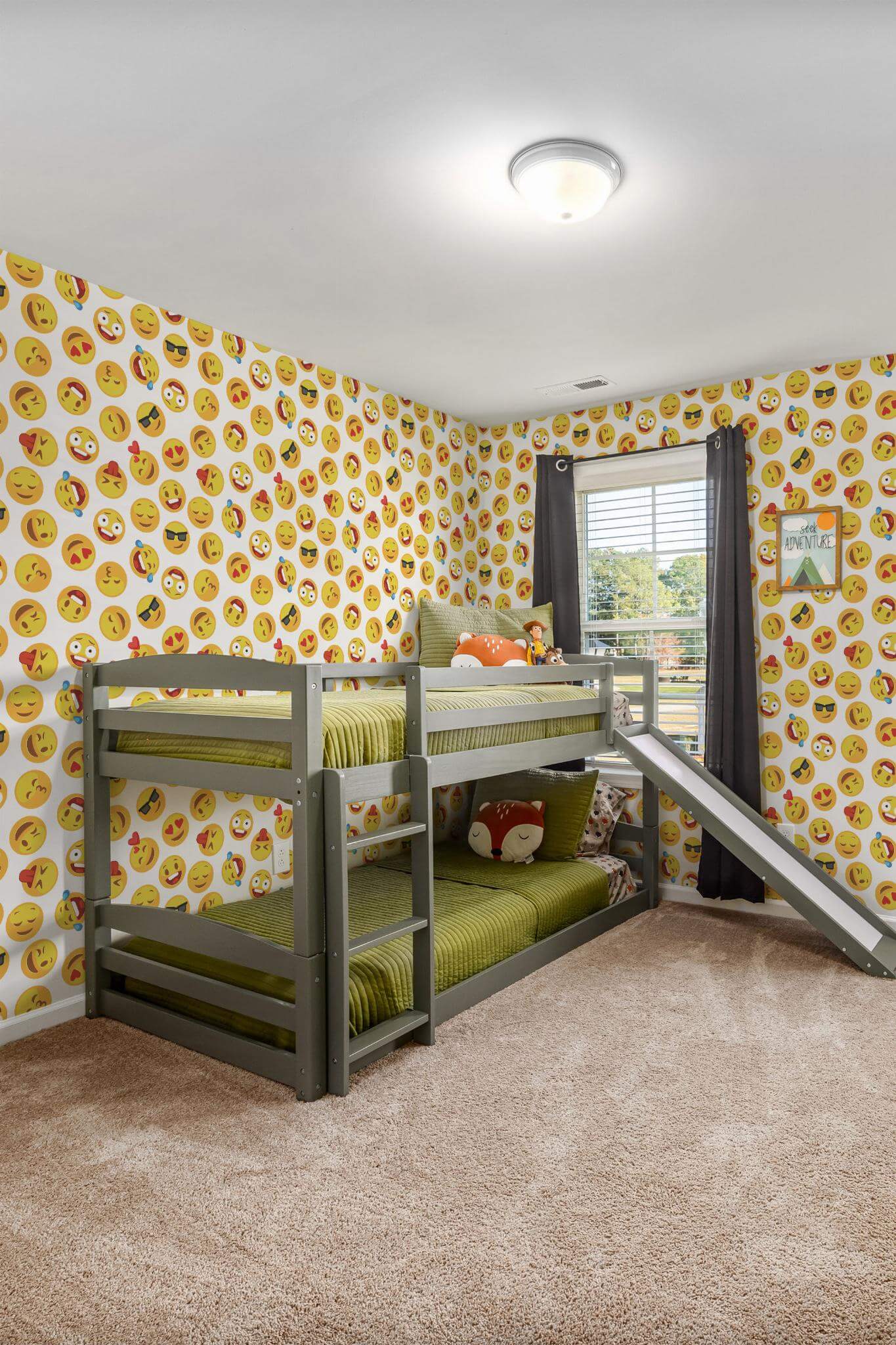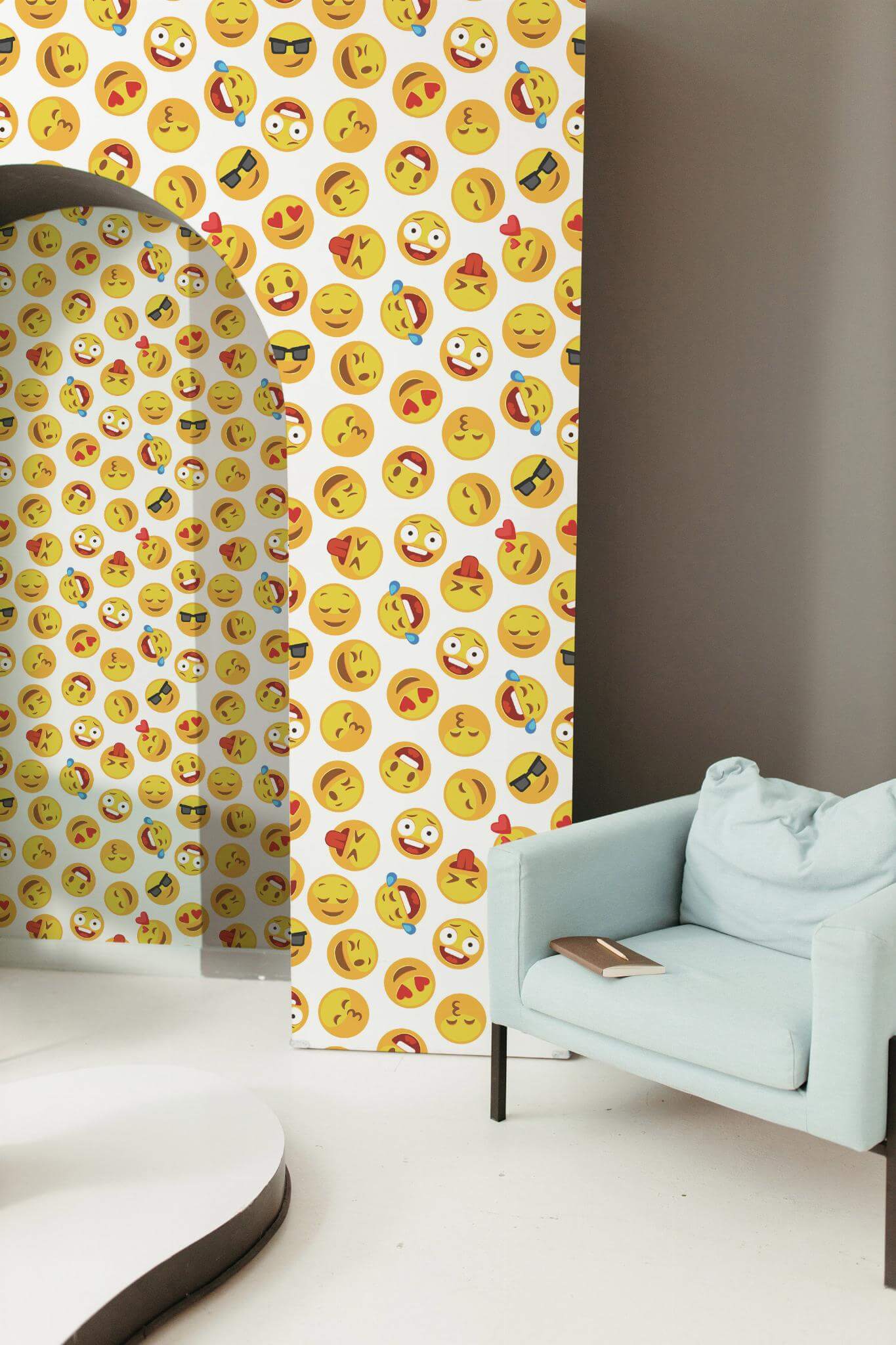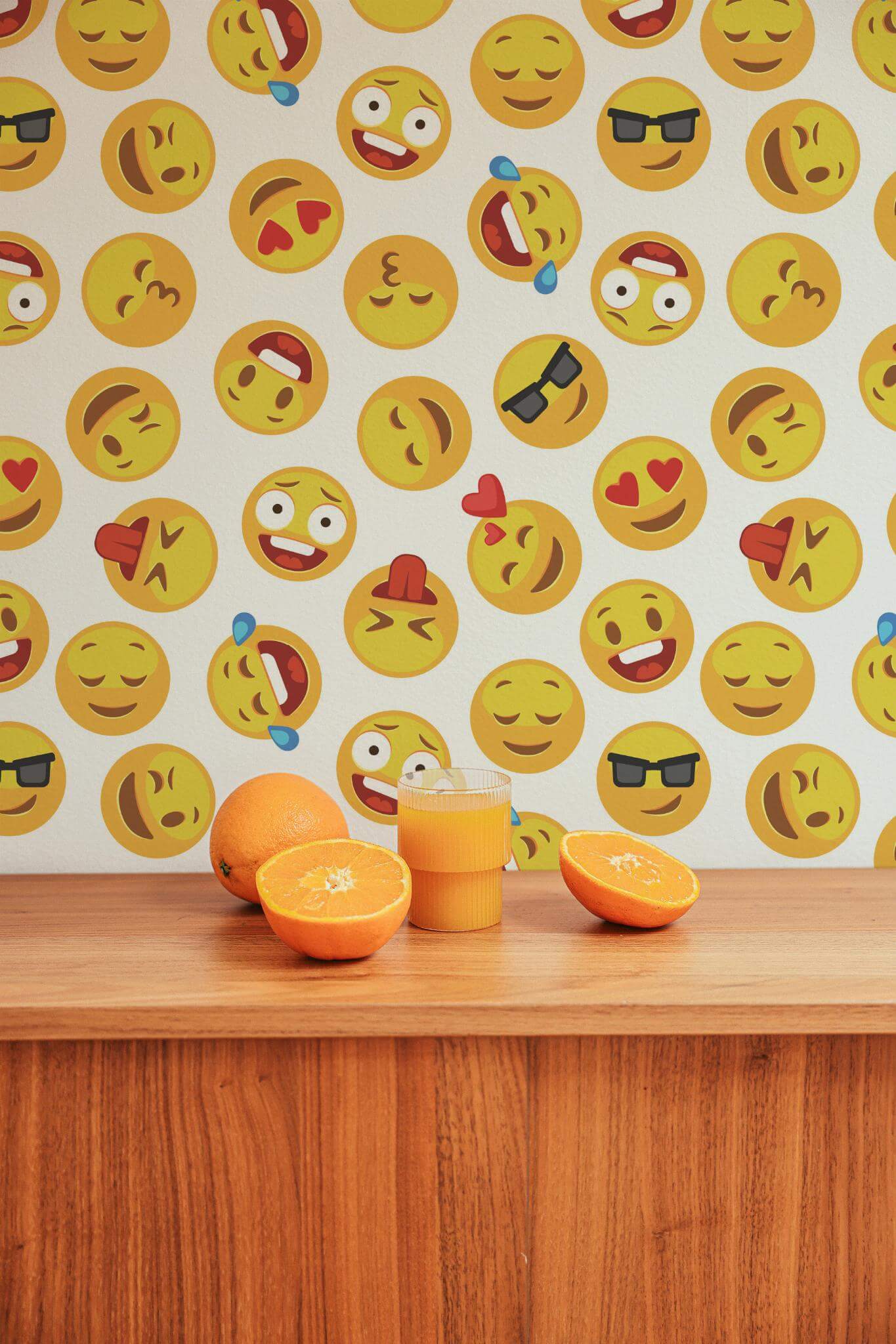 Emoji wallpaper brings a novelty style to life with its fun pattern and vibrant yellow faces, perfect for creating a cheerful atmosphere in any kids’ room. This playful design, highlighted by pops of red, transforms spaces with its whimsical and humorous charm, making it a delightful choice for not only children’s rooms but also play areas or creative spaces needing a splash of joy. The Emoji wallpaper is offered in two convenient options: an easy-to-apply peel and stick version that’s self-adhesive and removable, and a traditional non-pasted option that requires glue. Let the expressive and cartoon-like appeal of Emoji inspire a sense of adventure and optimism in your home, with our dedicated team ensuring color and life in every corner, all PVC-free and safe for your family.