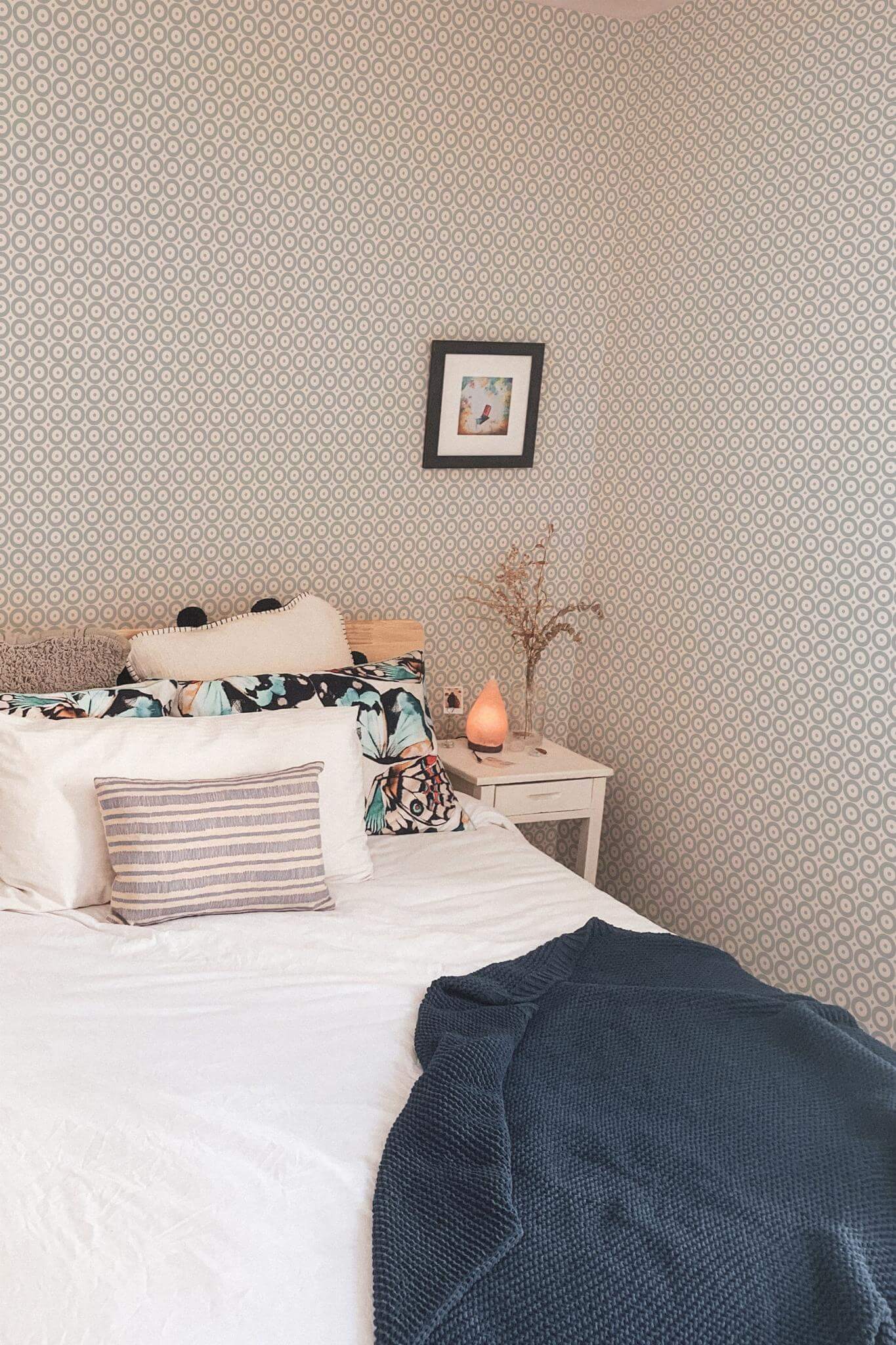 Geometric circles and dots wallpaper brings a chic farmhouse style to your bedroom with its sleek gray concentric circles and dots against a crisp white backdrop. This geometric pattern creates a balanced and minimalist aesthetic, perfect for adding a touch of retro sophistication to any room in your home. Whether you choose to enhance your living room or office with this design, the wallpaper offers a subtle yet impactful transformation. Available in both peel and stick and non-pasted options, the peel and stick version is easy to apply, removable, and requires no glue. Plus, you can customize the original Gray with any of our standard shades or a custom color of your choice, allowing your creativity to shine. By choosing the Geometric circles and dots wallpaper, you’re supporting a passionate, global team committed to crafting safe, PVC-free wall décor that celebrates the joy of bringing color and life to homes everywhere.