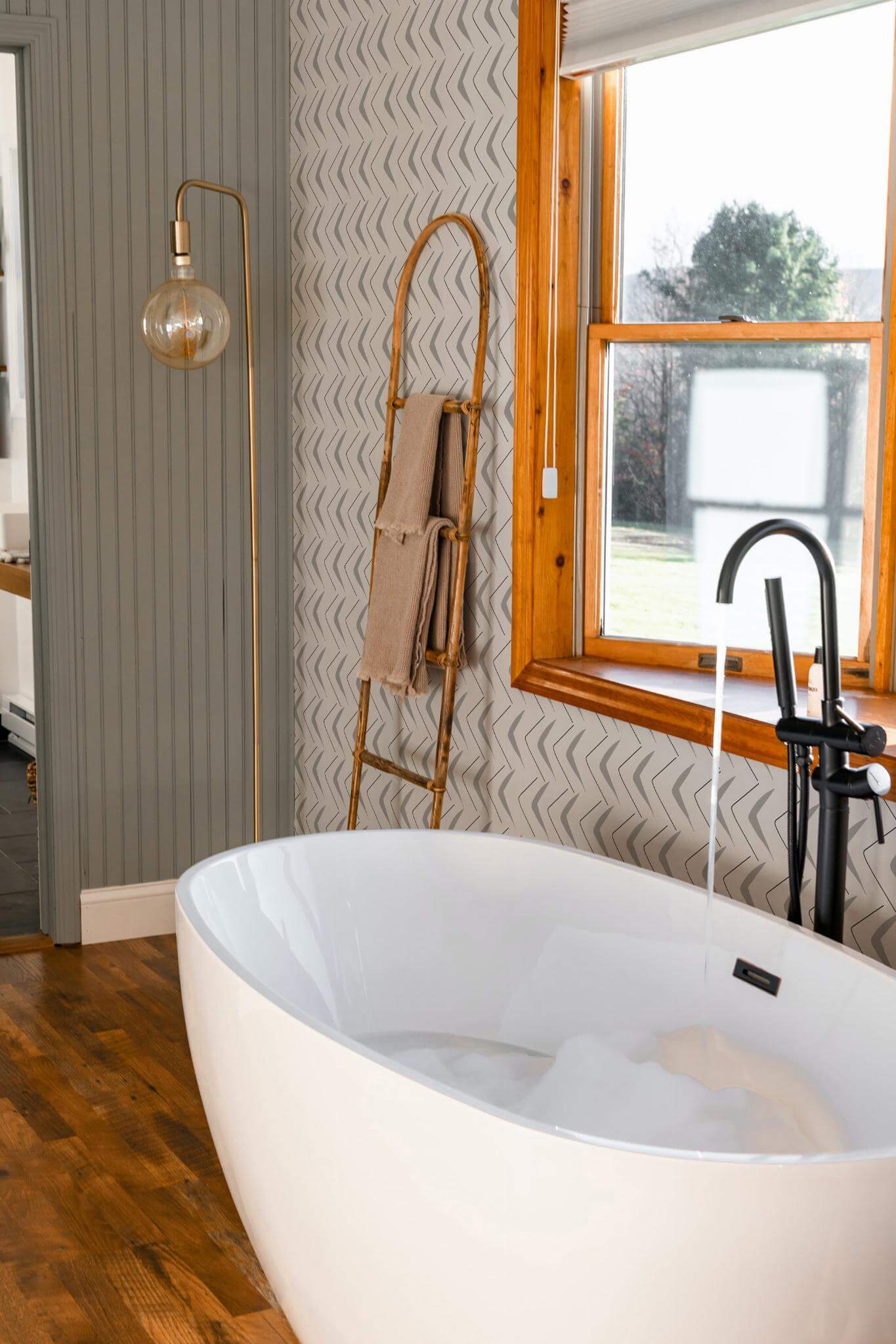 Gray chevron wallpaper brings a modern touch to your bathroom with its sleek gray and black chevron pattern on a soft gray backdrop. This dynamic, geometric design adds bold, edgy character, perfect for those who enjoy contemporary style. While it’s recommended for bathrooms, its versatile charm can enhance various spaces throughout your home, offering a fresh, inspired look. The Gray chevron wallpaper is available in two options: a peel and stick version, which is self-adhesive, removable, and easy to apply, and a traditional non-pasted option that requires glue. Let this innovative design, crafted by our passionate team, transform your interiors with safe, PVC-free beauty that speaks to your adventurous spirit.