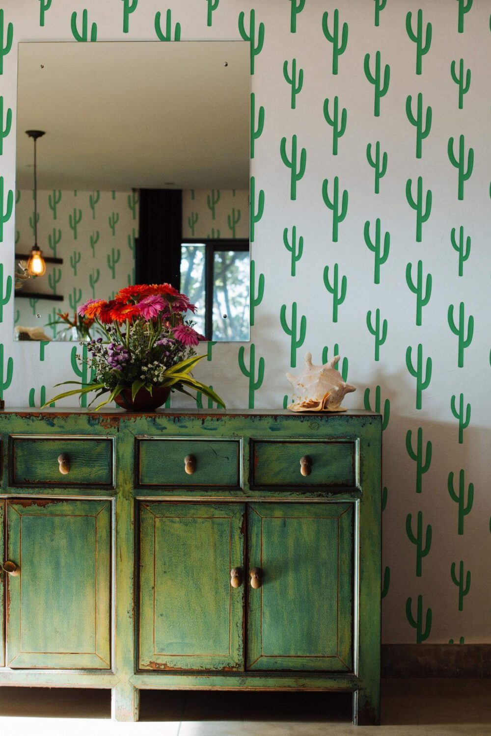 Minimalist plants wallpaper brings a touch of serene elegance to your living room with its minimalist style and delicate sage green leaf pattern. This wallpaper’s calming design creates a fresh, tranquil atmosphere that can enhance not only living rooms but any space in your home. Minimalist plants wallpaper offers the flexibility of both peel and stick (self-adhesive – no glue needed, removable) and non-pasted options, with the peel and stick version being especially easy to apply. The original Sage green can be replaced with any of our standard shades or a custom color of your choice, allowing you to infuse your personal touch into your décor. Inspired by nature and crafted with care, this wallpaper is PVC-free and is designed to bring joy and color to homes around the world.