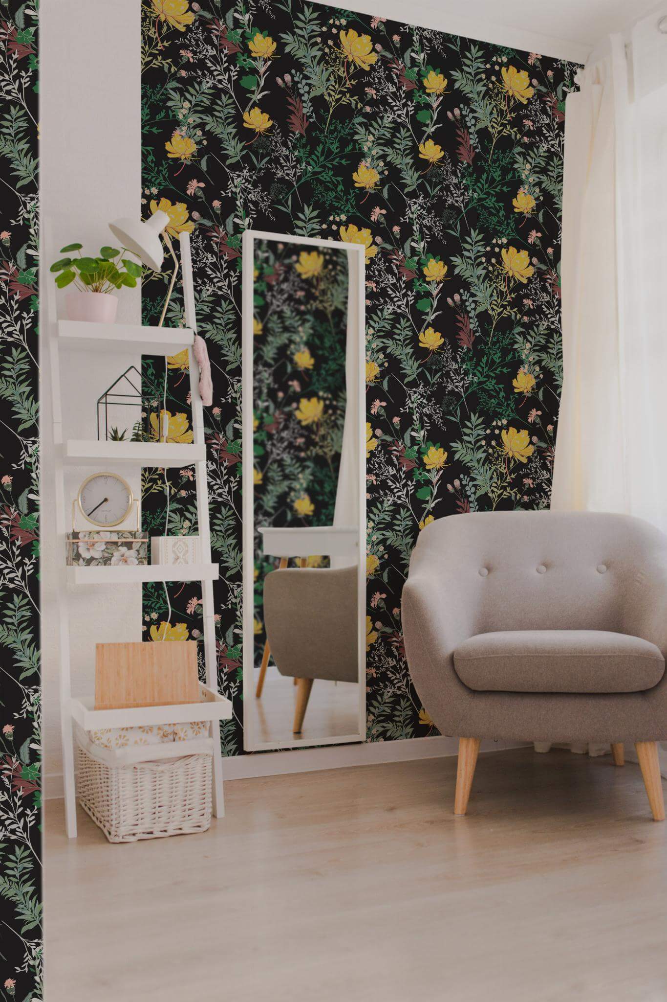 Modern floral wallpaper is a stunning botanical design that features vibrant green foliage and golden imitation blooms set against a dramatic black backdrop, perfect for adding a touch of elegance to your living room. This lush tapestry not only transforms living spaces but also brings an artistic contrast and natural vibrance to any room in your home. The Modern floral design is available in both peel and stick and non-pasted options, with the self-adhesive version making application a breeze—just peel and stick with no glue needed. Embrace the joy of bringing color and life into your home with this intricate and elegant wallpaper, crafted by our passionate team to be safe, PVC-free, and beautiful for every space.