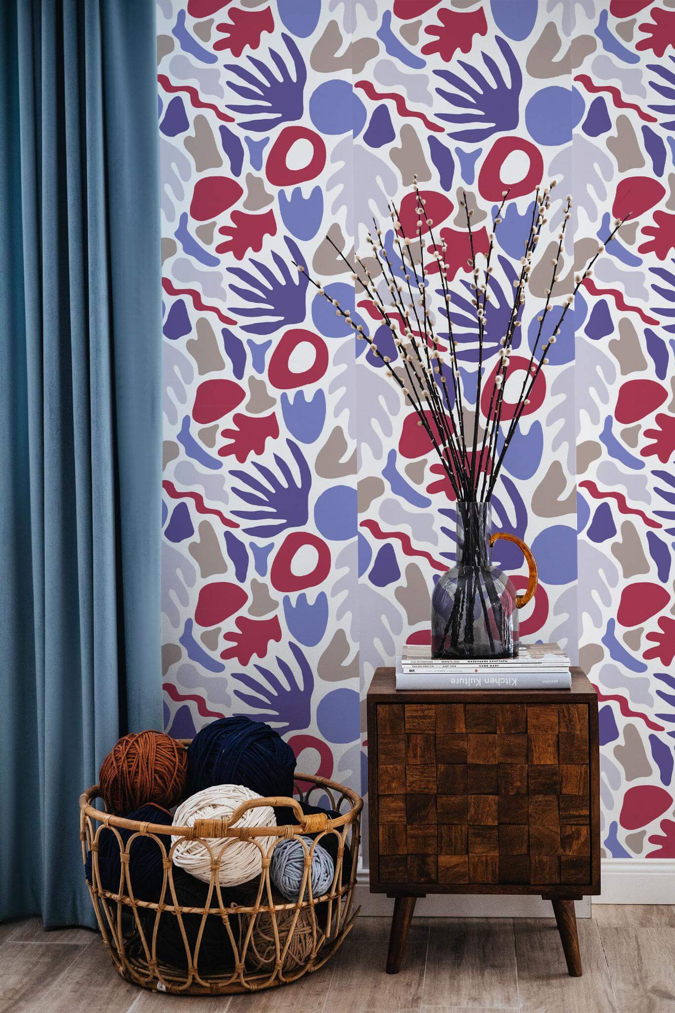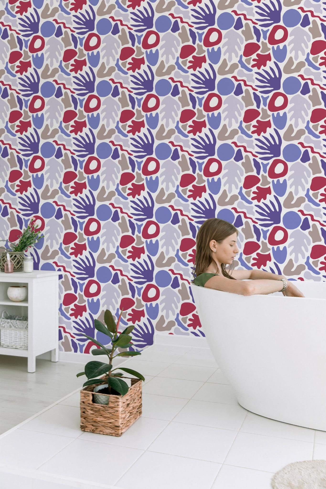 The Multicolor abstract seaweed wallpaper brings a vibrant nautical flair to your bathroom with its playful and dynamic design. Featuring bold blue and burgundy organic shapes dancing across a crisp white background, this artistic wallpaper adds a modern touch to any room, transforming spaces with its lively and colorful presence. While it’s perfect for bathrooms, the Multicolor abstract seaweed wallpaper can also breathe life into living rooms, kitchens, or any area needing a splash of inspiration. Available in both peel and stick (self-adhesive – no glue needed, removable) and non-pasted options, the peel and stick version is easy to apply, making it a convenient choice for a quick room refresh. With its bold and organic pattern, Multicolor abstract seaweed captures the essence of nature’s beauty, offering a joyful way to bring color and life to homes worldwide.