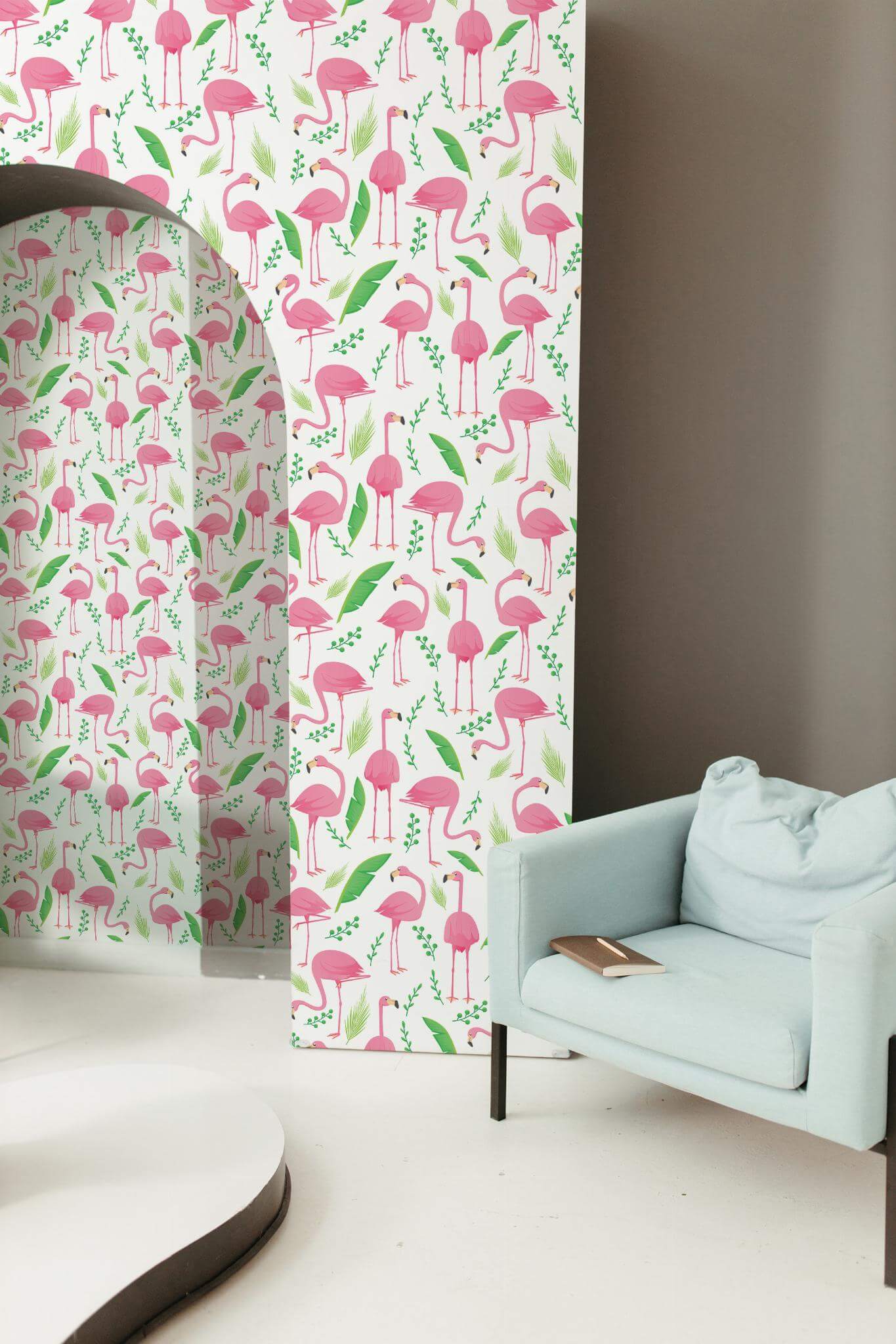 Pink flamingo wallpaper brings a tropical flair to any space with its playful pink flamingos and lush green leaves on a crisp white background, making it an ideal choice for a kids room. This cheerful and vibrant design creates a whimsical, fresh atmosphere that can brighten up not only children’s bedrooms but also playrooms and nurseries, infusing them with a sense of adventure and fun. Pink flamingo wallpaper is available in two options: a peel and stick version, which is self-adhesive and removable, offering an easy application process, and a traditional non-pasted option that requires glue. Let the exotic charm of Pink flamingo transform your home into a lively, colorful paradise, brought to life by a passionate team dedicated to crafting safe, PVC-free wall décor.