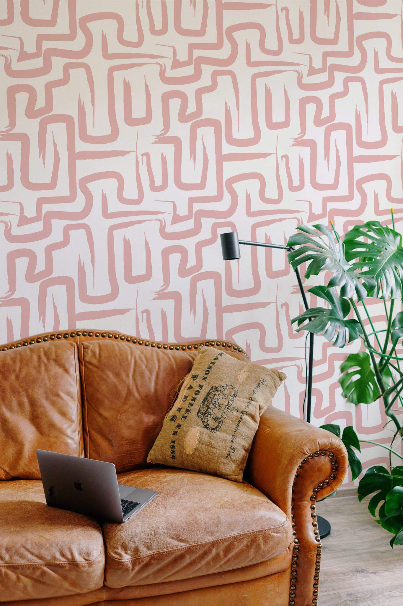 Pink Maze wallpaper invites a touch of abstract artistry into your living room with its blush brush stroke labyrinth set against a crisp white canvas. This modern and minimalist design brings a fluid and calming atmosphere to any space, making it equally suitable for bedrooms, offices, or creative studios. The dynamic patterns of Pink Maze wallpaper transform your walls into a contemporary art piece, adding an artistic flair that inspires and rejuvenates. Available in both peel and stick (self-adhesive – no glue needed, removable) and traditional non-pasted options, only the peel and stick version is easy to apply. With the option to customize colors, you can replace the original blush with any of our standard shades or a custom hue of your choice. Our innovative team is passionate about creating globally-inspired, PVC-free wall décor that fills homes with joy and vibrant life.