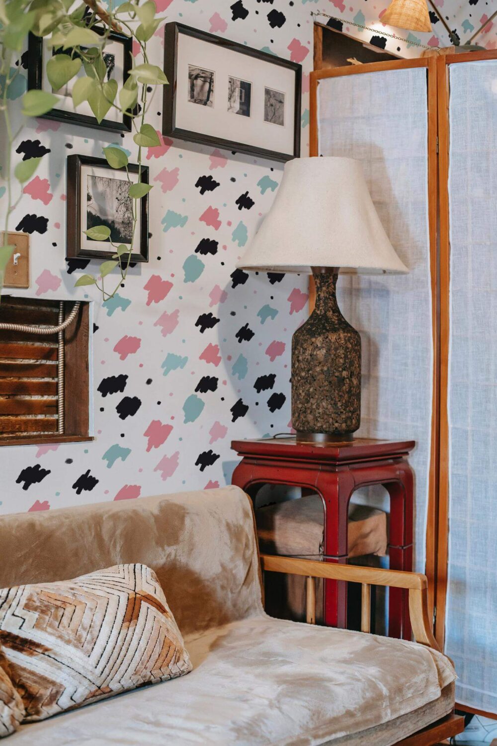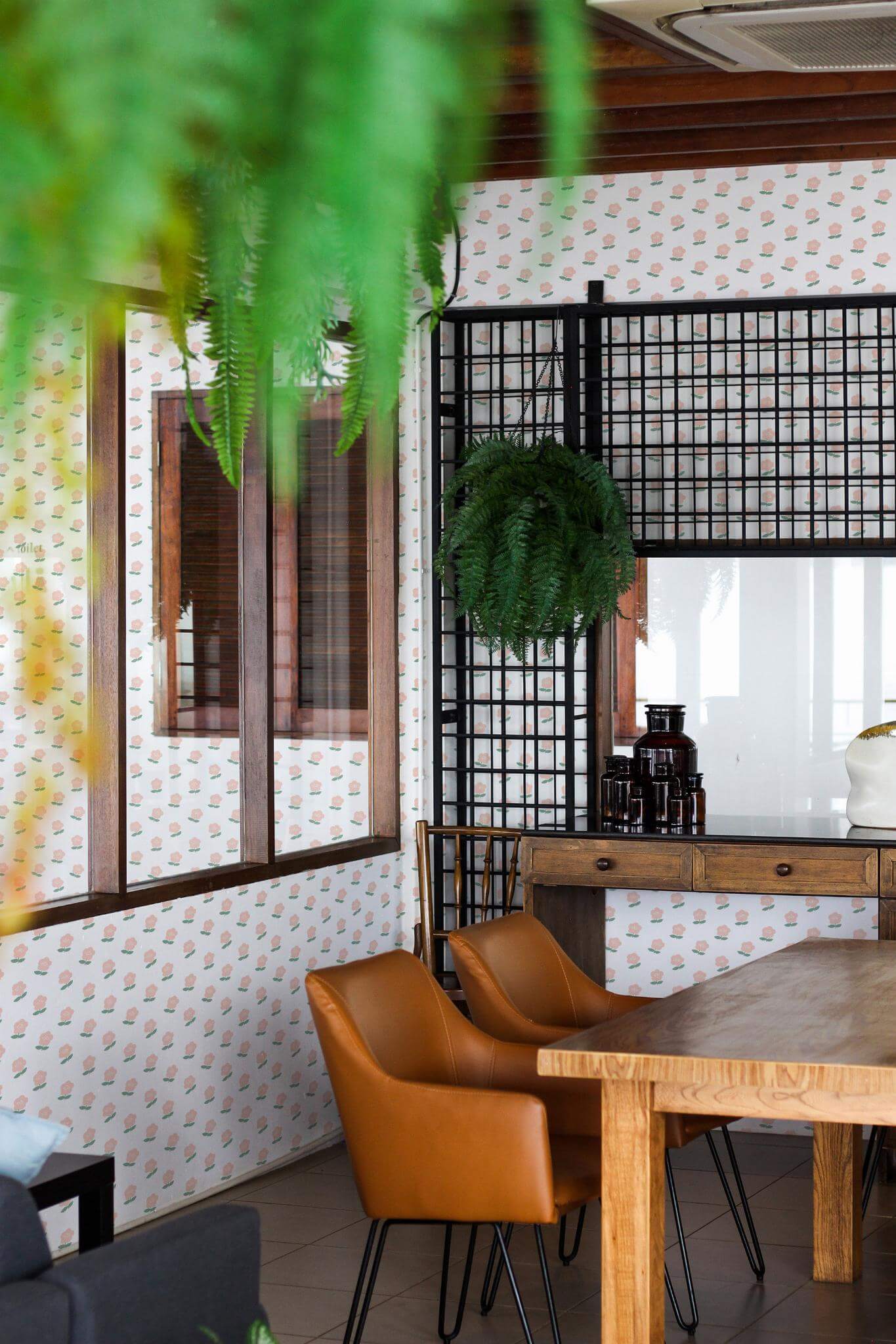 Pink Scandinavian Floral wallpaper brings a touch of minimalist elegance to your powder room with its delicate blush floral motifs and sage green leaves gracefully set against a soft white background. This charming and airy pattern adds a playful yet gentle ambiance, perfect for transforming any space into a whimsical retreat. While the design is ideal for powder rooms, its versatile allure can enhance other areas of your home, creating a delightful and soft atmosphere wherever it’s displayed. Available in both peel and stick (self-adhesive – no glue needed, removable) and non-pasted (traditional application with glue) options, the peel and stick version is easy to apply, making it a breeze to introduce the Pink Scandinavian Floral wallpaper into your decor. Experience the joy of bringing nature’s inspiration into your home with a design that’s as charming as it is innovative.