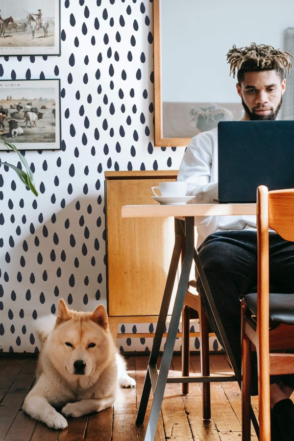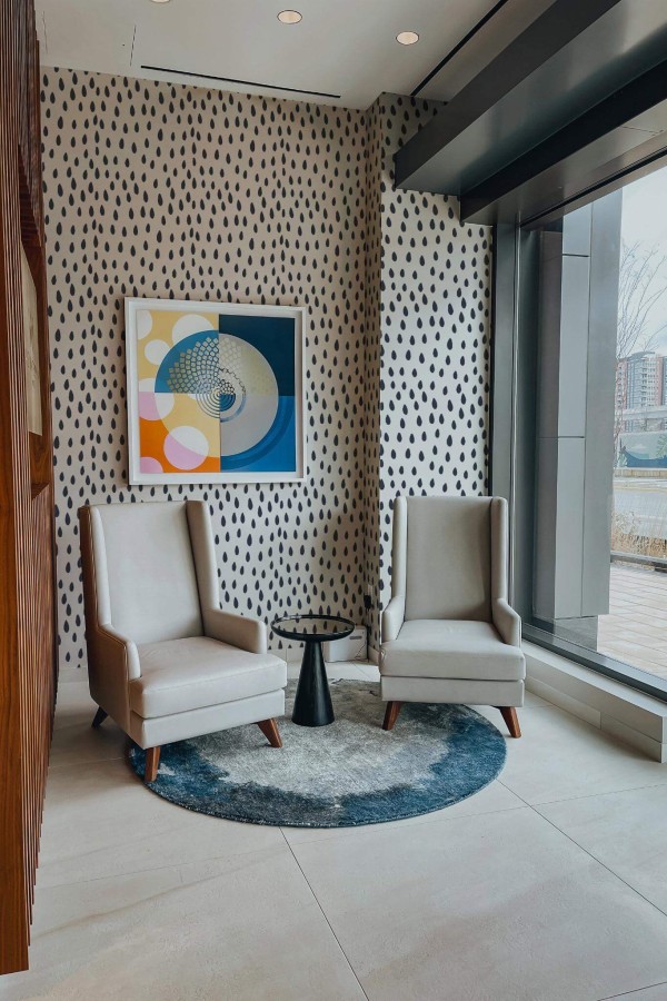 Raindrop wallpaper invites an eclectic flair into your office with its bold black teardrop pattern dancing across a crisp white background, complemented by playful blue accents. This modern and abstract design offers a soothing yet lively touch, transforming not only workspaces but also bedrooms, living rooms, or any area in need of a refreshing update. Raindrop wallpaper is available in both peel and stick, which is easy to apply and remove, and a traditional non-pasted option for those who prefer using glue. The original blue and white can be replaced with any of our standard shades or a custom color of your choice, allowing you to tailor the design to your unique vision. Discover the joy of bringing nature-inspired beauty into your home with this innovative, PVC-free wall décor that reflects our passion for creating safe and stunning spaces worldwide.