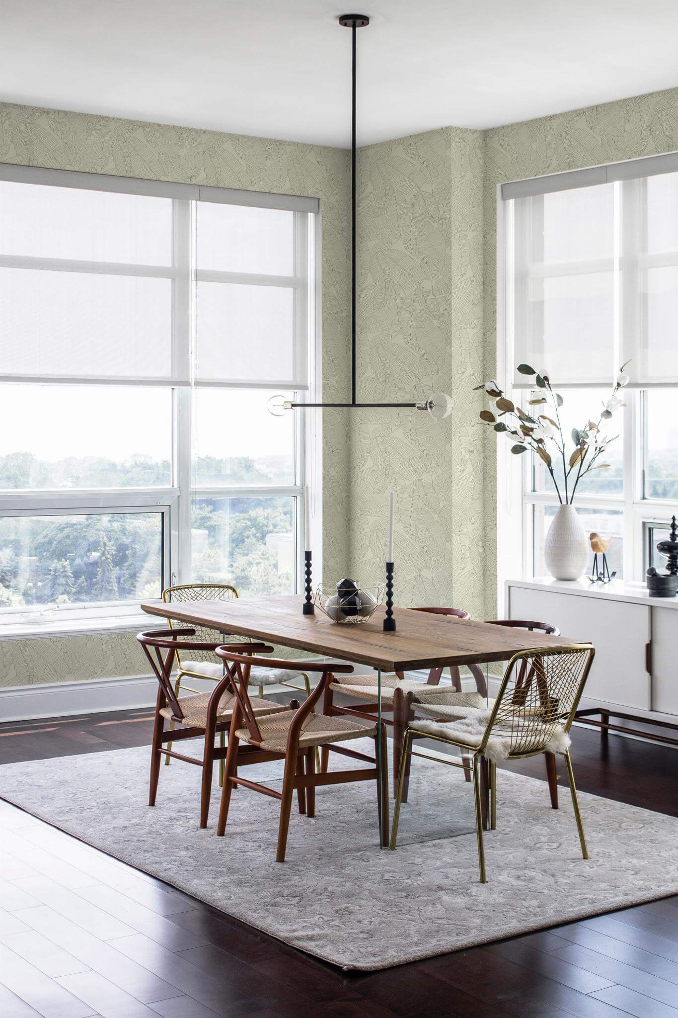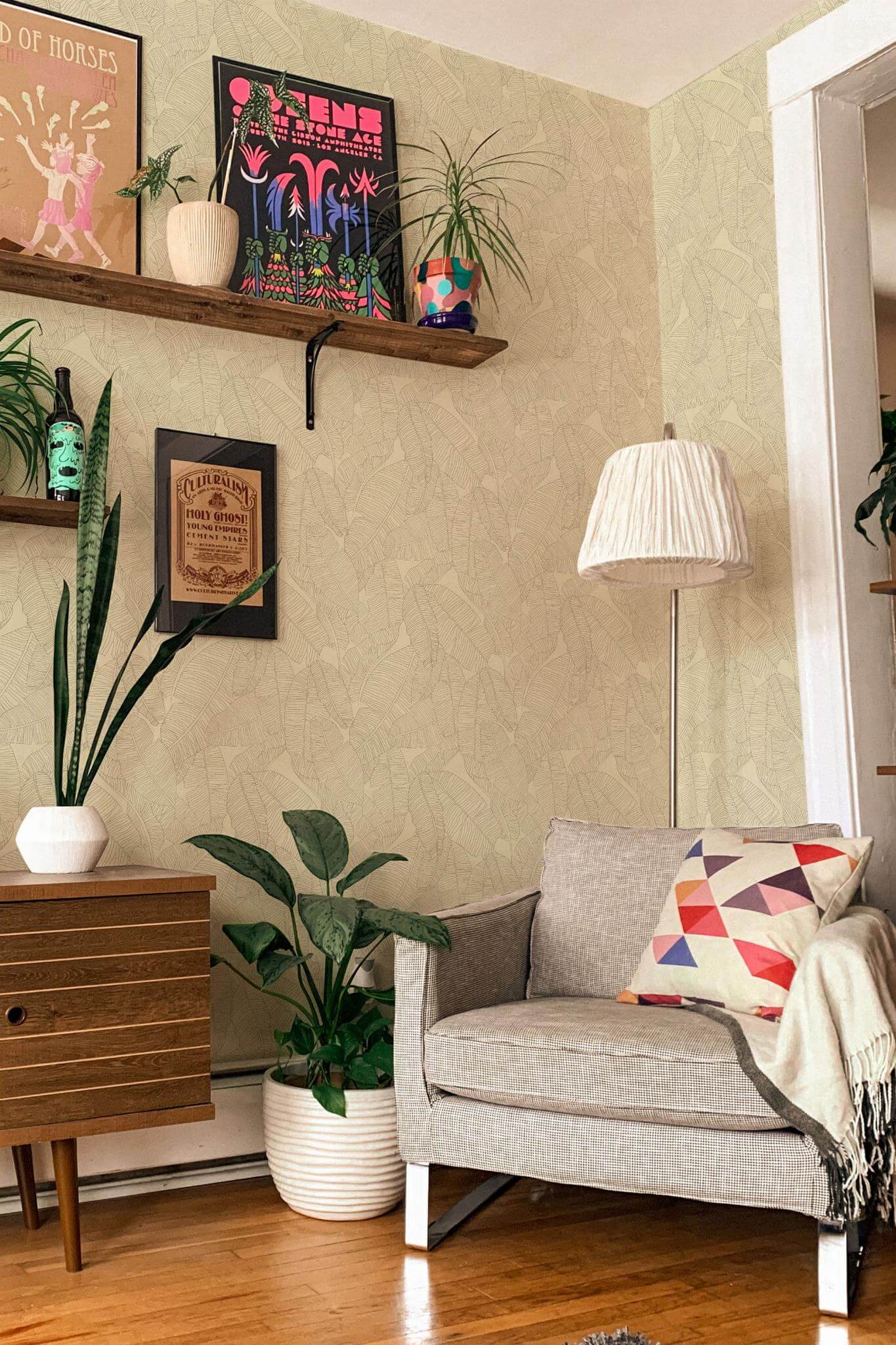 The Seamless banana leaf wallpaper brings a neutral style to your living room with its delicate sage green banana leaves set against a soft beige backdrop. This calming and natural design creates a serene and minimalist atmosphere, perfect for enhancing any space in your home with a touch of tropical elegance. Whether you’re transforming your living room or adding a soothing vibe to a bedroom or hallway, the Seamless banana leaf wallpaper offers an earthy and relaxing ambiance. Available in two options, you can choose the peel and stick version, which is self-adhesive and easy to apply without glue, or the traditional non-pasted option that requires glue for installation. Embrace the beauty of nature and let this design bring a breath of fresh, stylish air into your living spaces.