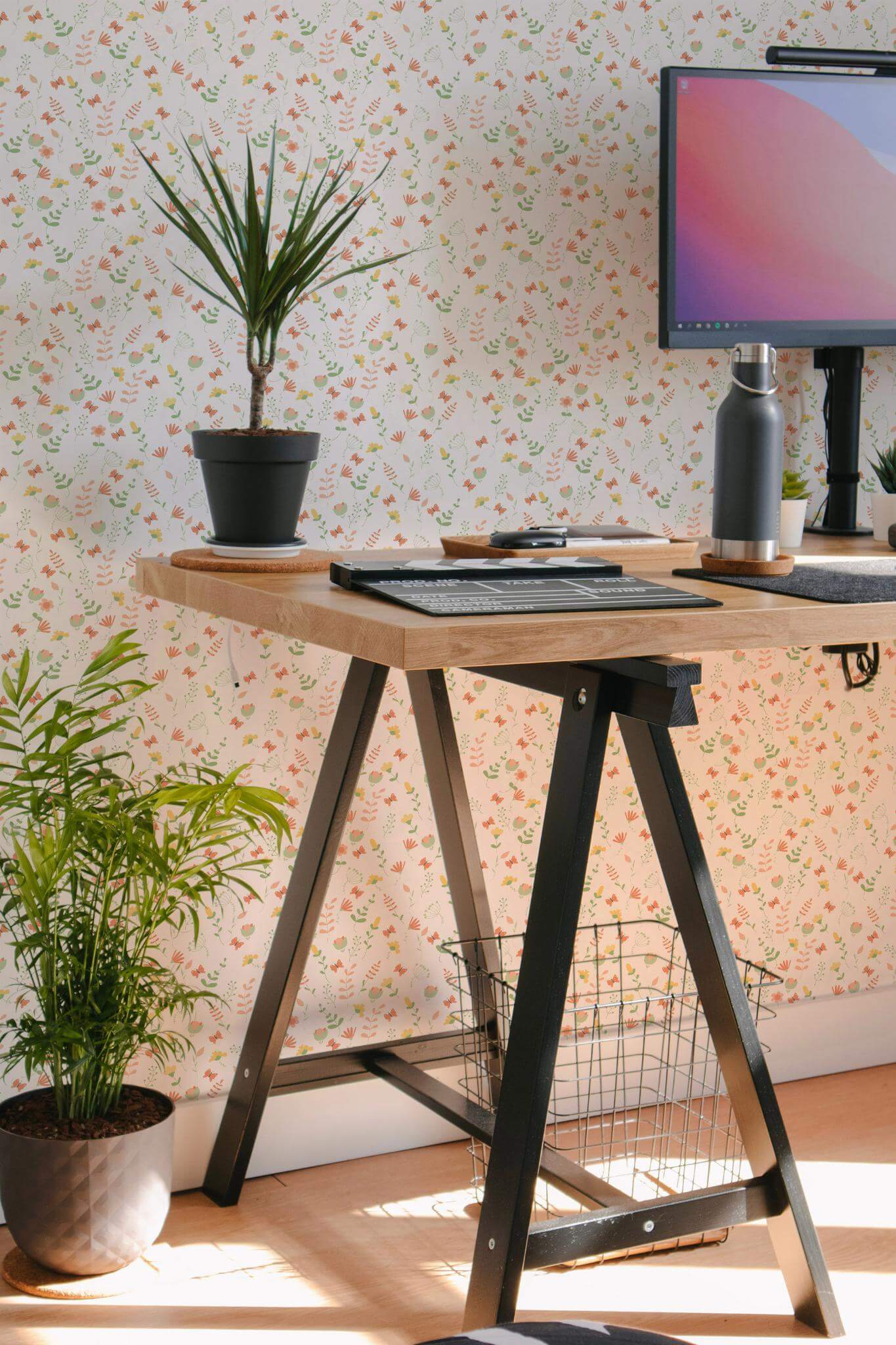 Small flowers wallpaper brings the enchanting beauty of a botanical garden into your nursery with its delicate pastel aesthetic. This charming floral pattern, adorned with whimsical butterflies dancing among soft green leaves on a creamy background, adds a touch of serene elegance to any room. While perfect for nurseries, its playful yet calming design can enhance any space, creating a delightful atmosphere that’s both inviting and soothing. Available in two options, the peel and stick version is easy to apply and removable, requiring no glue, while the non-pasted version offers a traditional application method for those who prefer it. Experience the joy and innovation of transforming your interiors with the Small flowers wallpaper, designed to bring the beauty of nature into your home.