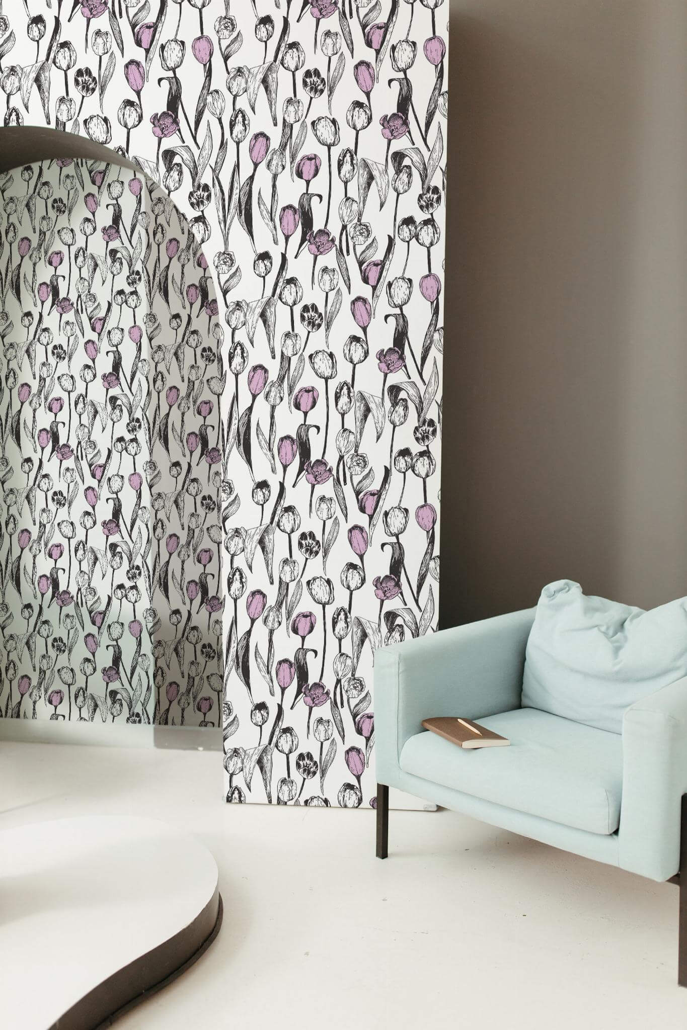 Tulip wallpaper brings a touch of botanical elegance to any space with its intricate black and white floral pattern, delicately accented by lavender on a crisp white background. Perfectly suited for a beauty salon, this chic design also enhances other interiors, adding a vintage and artistic flair to living rooms, bedrooms, or any area in need of a stylish update. The Tulip design captures the essence of nature’s beauty, inspiring joy and innovation in home décor. Available in two options, the peel and stick version is easy to apply, requiring no glue and offering the convenience of removal, while the traditional non-pasted choice allows for a more permanent application. Whether you choose the removable or traditional option, the Tulip wallpaper promises to transform your space with its timeless, monochrome charm.