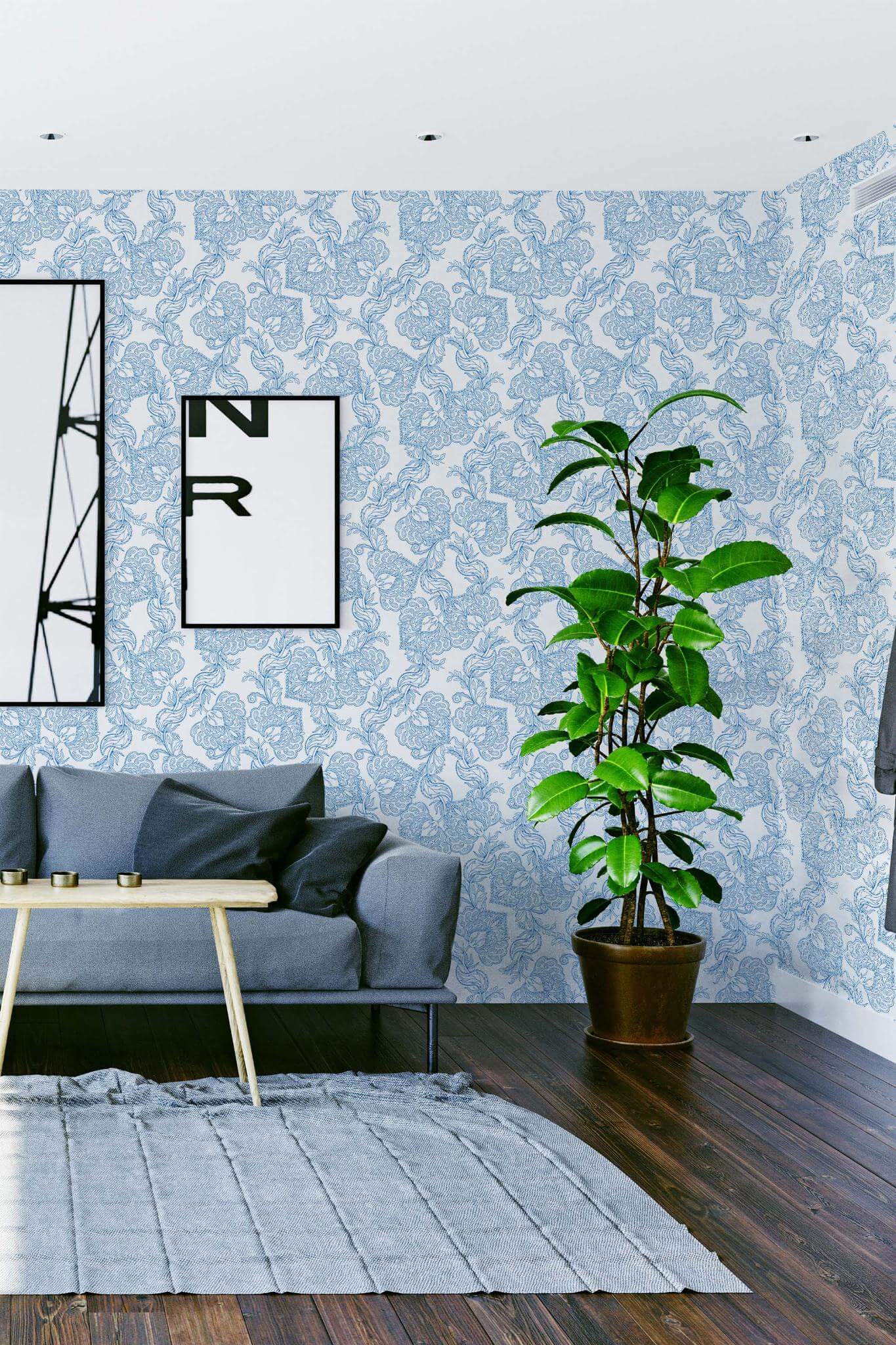 Vintage orchid floral wallpaper brings the timeless elegance of Chinoiserie style to your living room, showcasing intricate blue floral motifs that dance gracefully across a pristine white background. This serene design transforms any space into an artistic haven, making it a perfect choice not only for living rooms but also for bedrooms, dining areas, or any spot that could use a touch of vintage charm. Available in both peel and stick (self-adhesive, no glue needed, removable) and traditional non-pasted options, this wallpaper offers flexibility for any installation preference, with the peel and stick version being particularly easy to apply. The original Blue and white can be replaced with any of our standard shades or a custom color of your choice, allowing you to tailor this exquisite design to your unique style. Our global team is passionate about crafting safe, PVC-free wall décor that brings joy and life to homes around the world, and the Vintage orchid floral design is no exception.