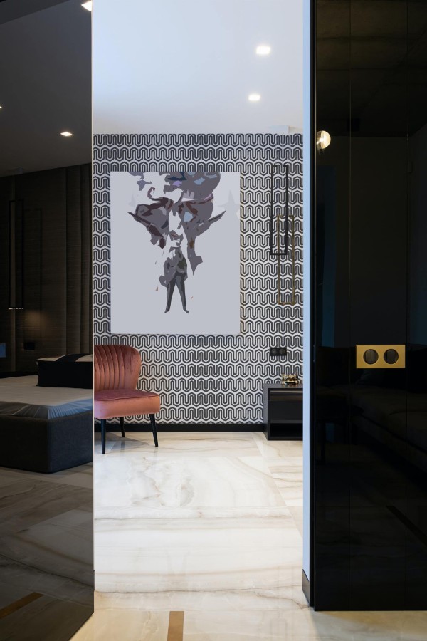 Wavy geometric wallpaper brings a modern touch to your bathroom with its striking black and white chevron pattern, adding a bold, zigzag motif that creates dynamic contrast. Perfect for those looking to make a statement, its geometric flair can enhance not only bathrooms but also living rooms, offices, or any space that craves a touch of monochrome elegance. Wavy geometric wallpaper is available in two options: the peel and stick version, which is easy to apply and remove without needing glue, and the traditional non-pasted option for those who prefer using their own adhesive. The original Black and white can be replaced with any of our standard shades or a custom color of your choice, giving you the freedom to personalize your decor. Our passionate team is dedicated to crafting safe, PVC-free wall décor that brings color and life to homes around the world.